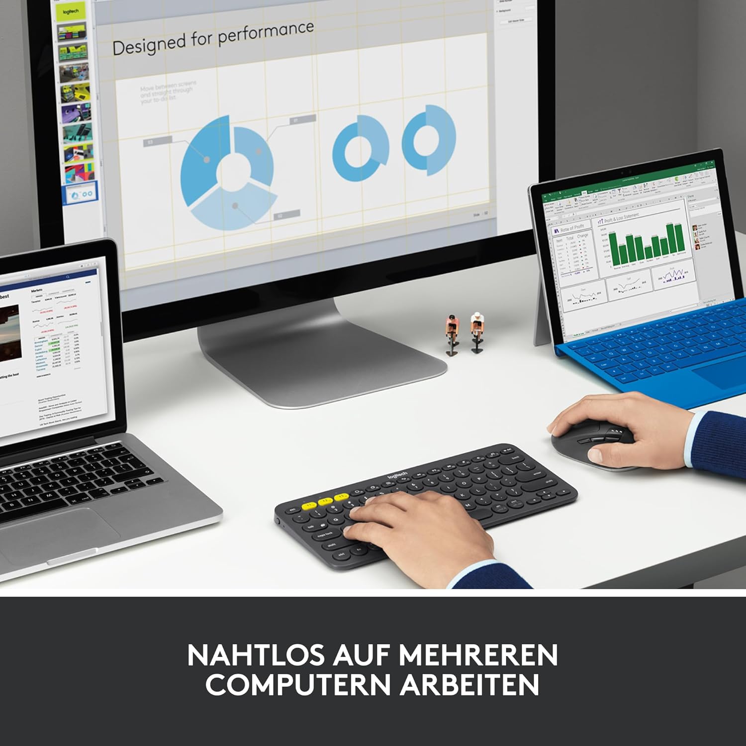 - Kabellose Multi-Device Maus: Cursor, Texte und Dateien auf mehreren Computern mit Logitech FLOW bewegen und einfach zwischen bis zu 3 Computern oder Laptops mit einem Tastendruck umschalten