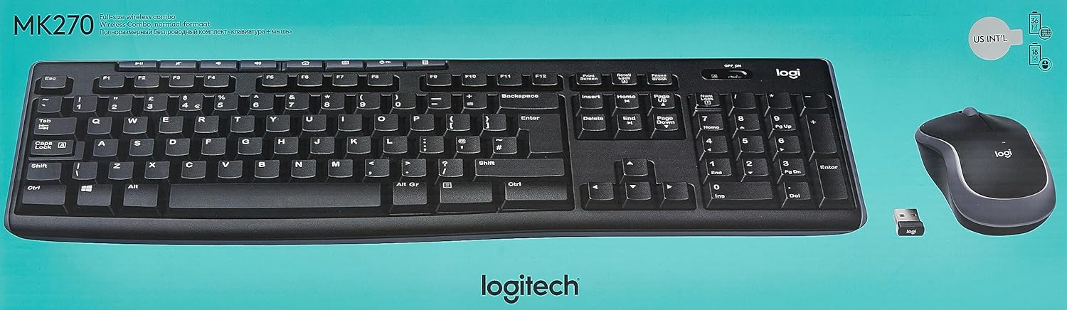 Logitech MK270 Kabelloses Set mit Tastatur und Maus für Windows, Englishes QWERTY-Layout - Schwarz S