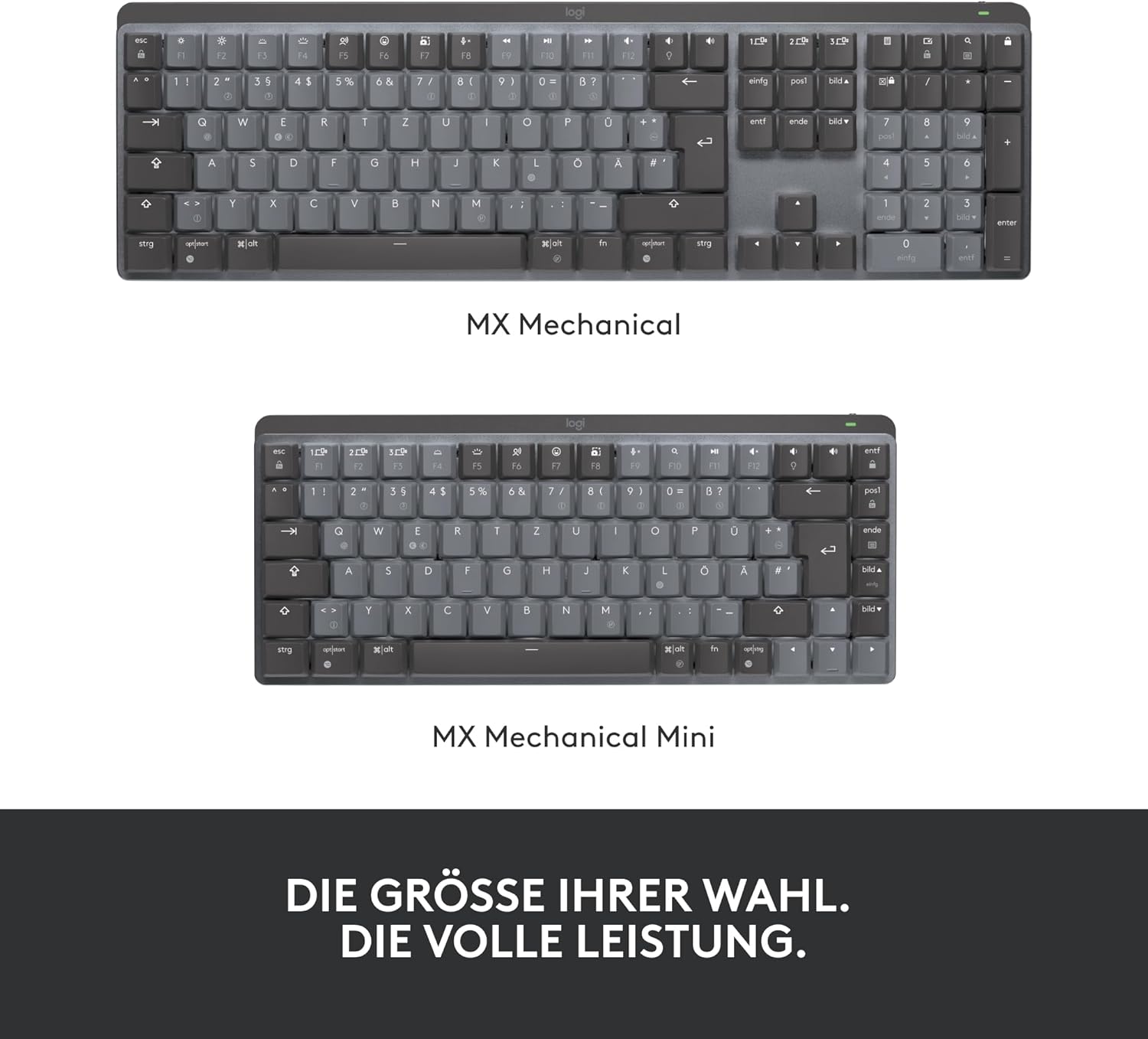 - MX Mechanisch in voller Grösse: Für alle, die häufig mit Zahlen hantieren, ist auch eine Tastatur in voller Grösse mit integriertem Ziffernblock erhältlich