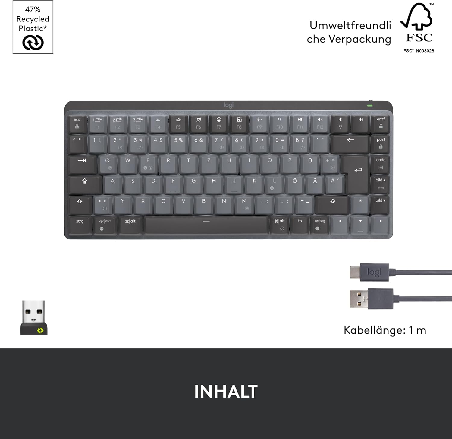 - USB-C-Schnellladung: Die mechanische MX Tastatur bleibt bis zu 15 Tage mit einer vollen Ladung oder bis zu 10 Monate mit ausgeschalteter Hintergrundbeleuchtung eingeschaltet(3)