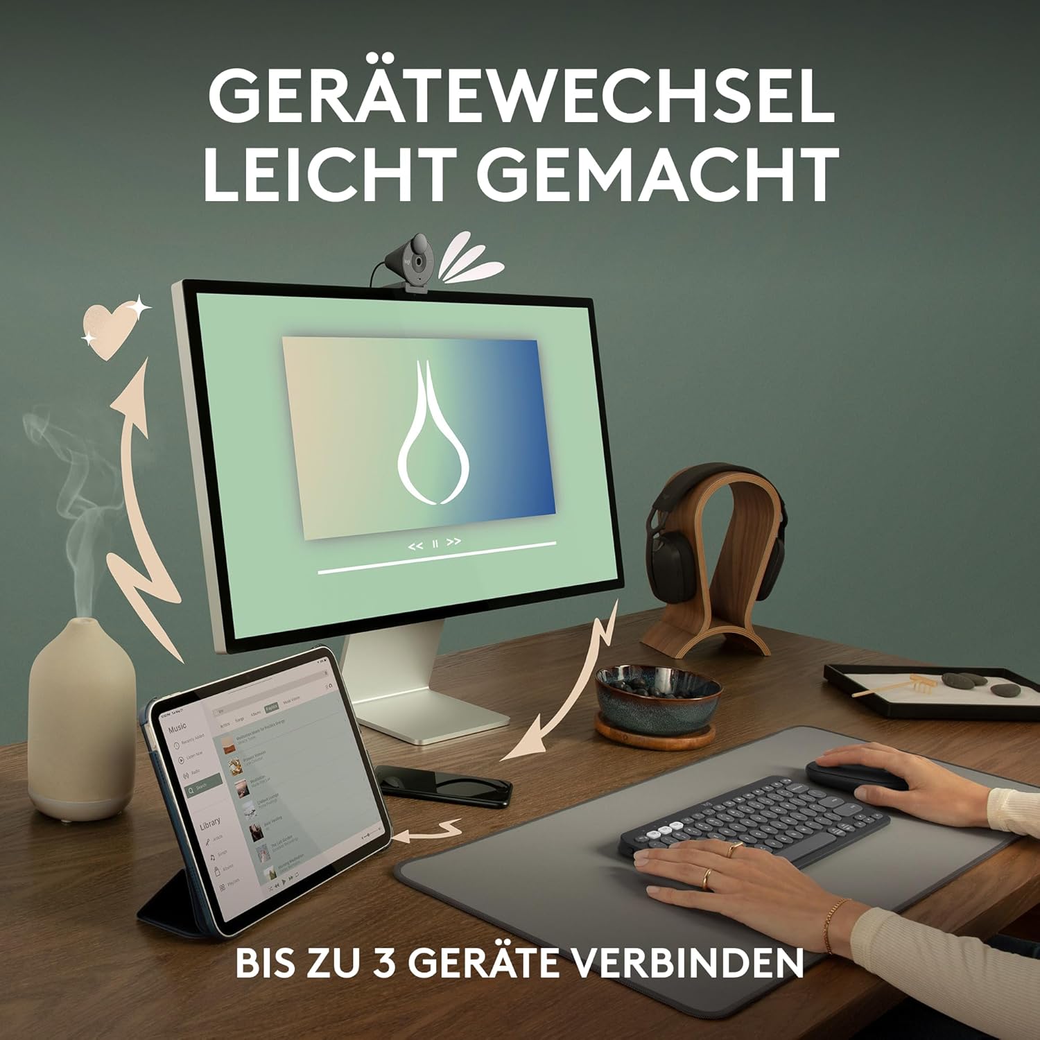 • Einfaches Wechseln zwischen 3 Geräten: Bluetooth-Verbindung betriebssystemübergreifend (Windows, macOS, iPadOS, ChromeOS) mit bis zu 3 kabellosen Geräten, Gerätewechsel mit Easy-Switch Taste der Maus
