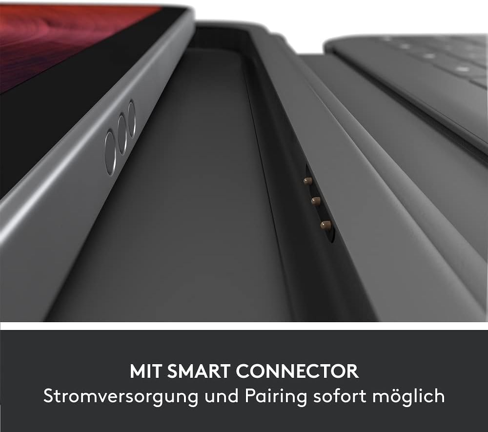 - Die Tastatur rastet über eine Magnetverbindung ein und stellt mithilfe der Smart Connector Technologie sofort eine Verbindung her. Es ist kein kompliziertes Bluetooth-Pairing nötig und die Tastatur bezieht ihren Strom direkt vom iPad (10. Generation),