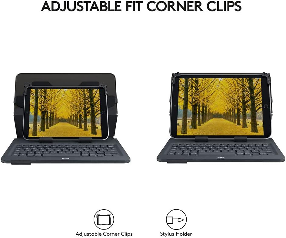 • Produkt 1: Cleveres Design: Die Universal Folio Tablet-Hülle mit Tastatur entspricht den hohen Logitech Qualitätsstandards und bleibt Dank eines Riemens beim Transport in der Tasche geschlossen