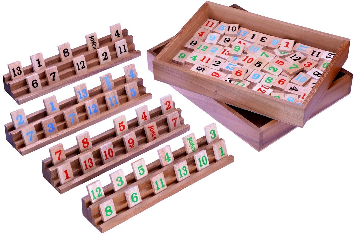 - 108 Spielsteine und 4 Halterungen in sehr edler und stabiler Ausführung aus Samena- und Hevea-Holz