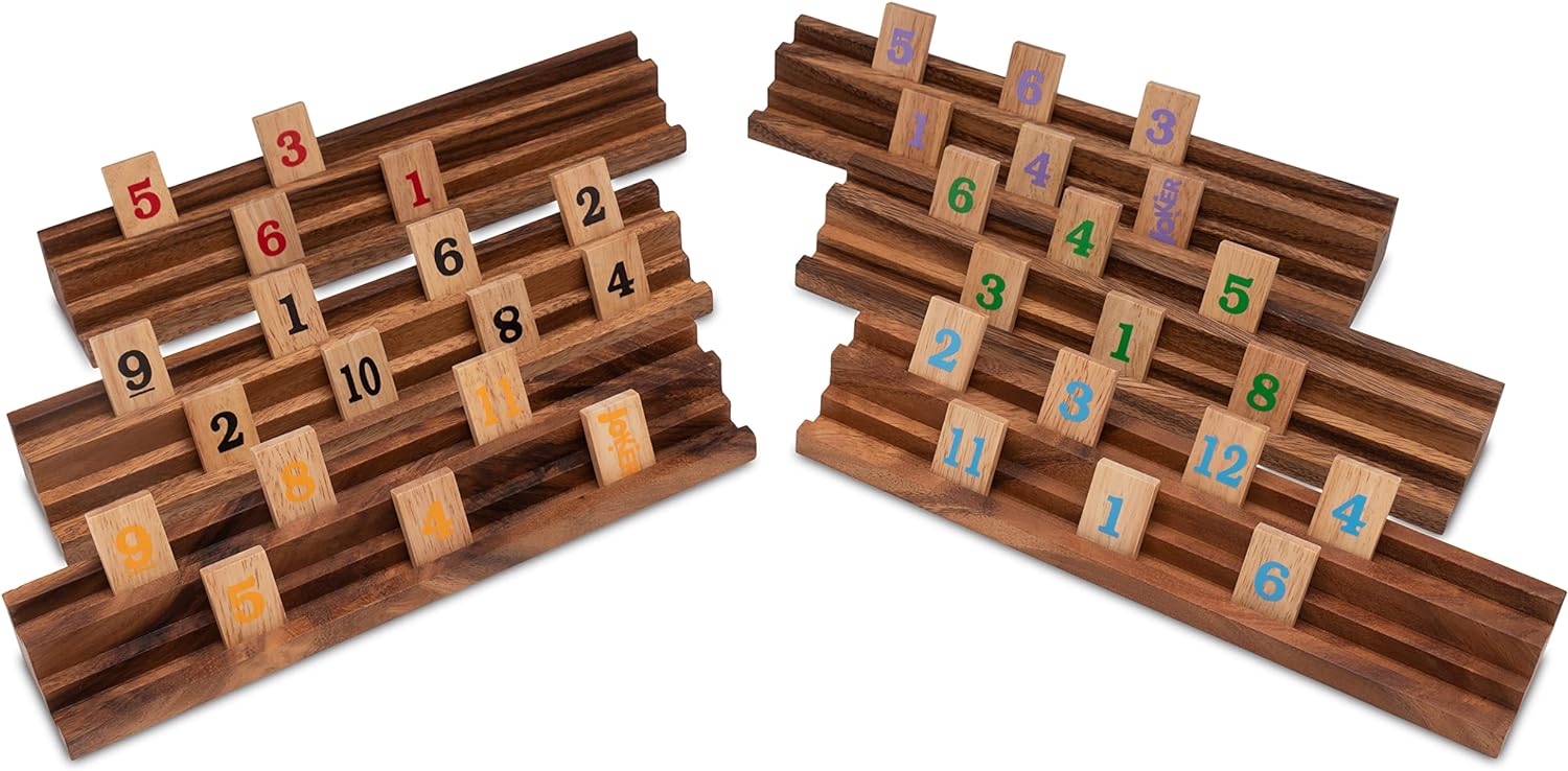 - 162 Spielsteine und 6 Halterungen in edler Ausführung aus dunklem Samena- und hellem Hevea-Holz