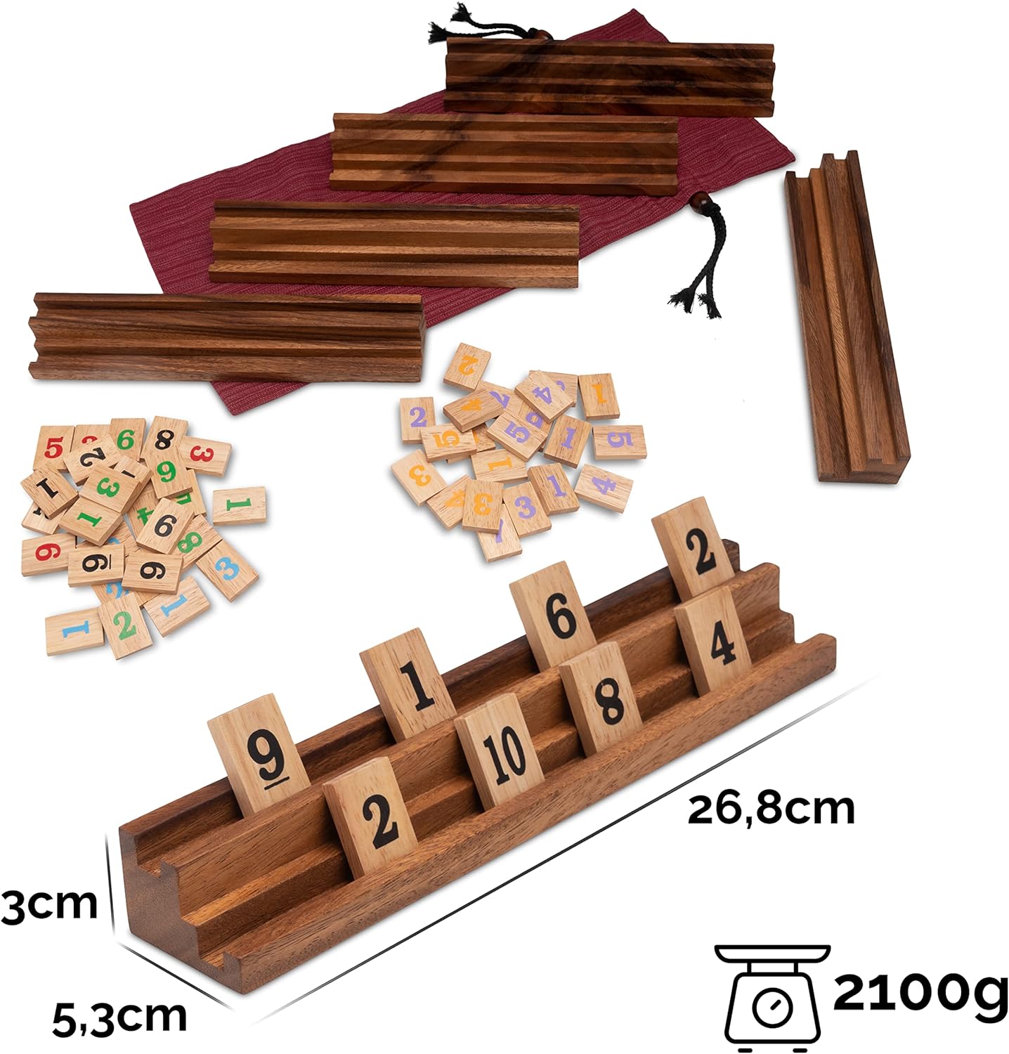 - Masse: Halterungen 5,3 x 26,8 x 3 cm, Spielsteine 3 x 2 x 0,5 cm, Gewicht: 1600 g