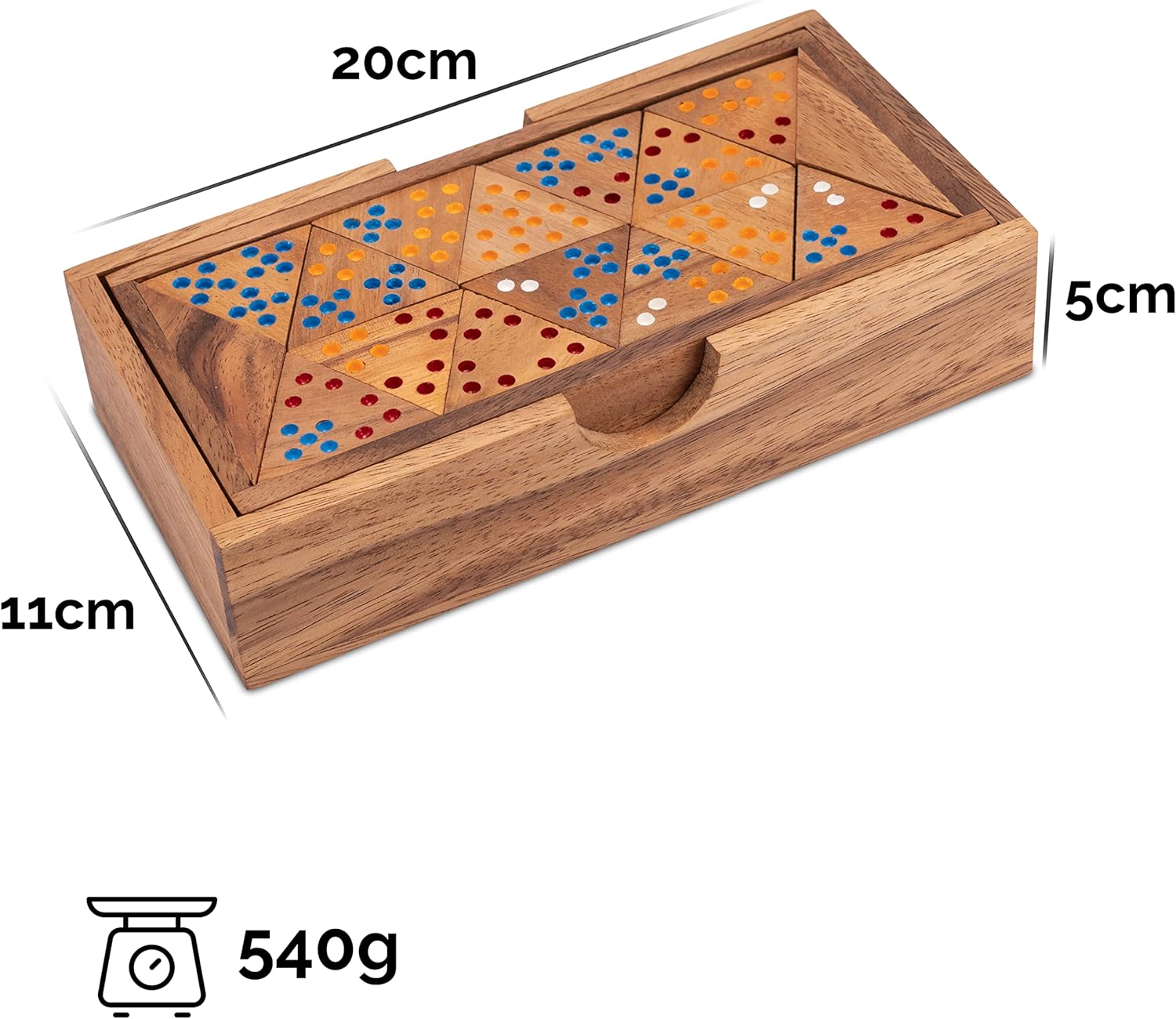 - Anspruchsvolle Domino-Variante in dreieckiger Form für 2 bis 6 Spieler