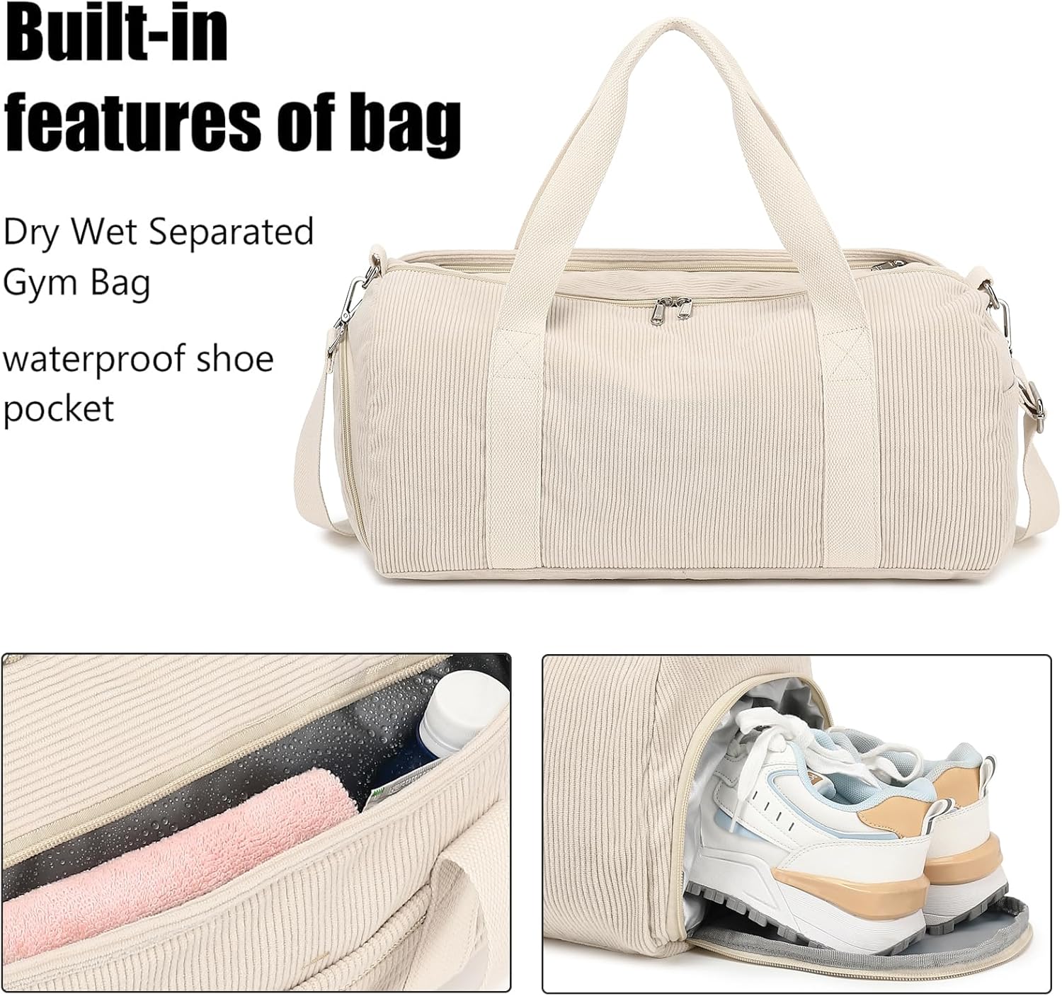 - Gym Bag mit Schuhfach könnte ein Paar Sportschuhe und einen Hausschuhe stellen. Belüftung hält Ihre Schuhe trocken. Auch eine Kunststoff-Nasstasche mit Reissverschluss für schmutzige/nasse Kleidung oder Handtücher.