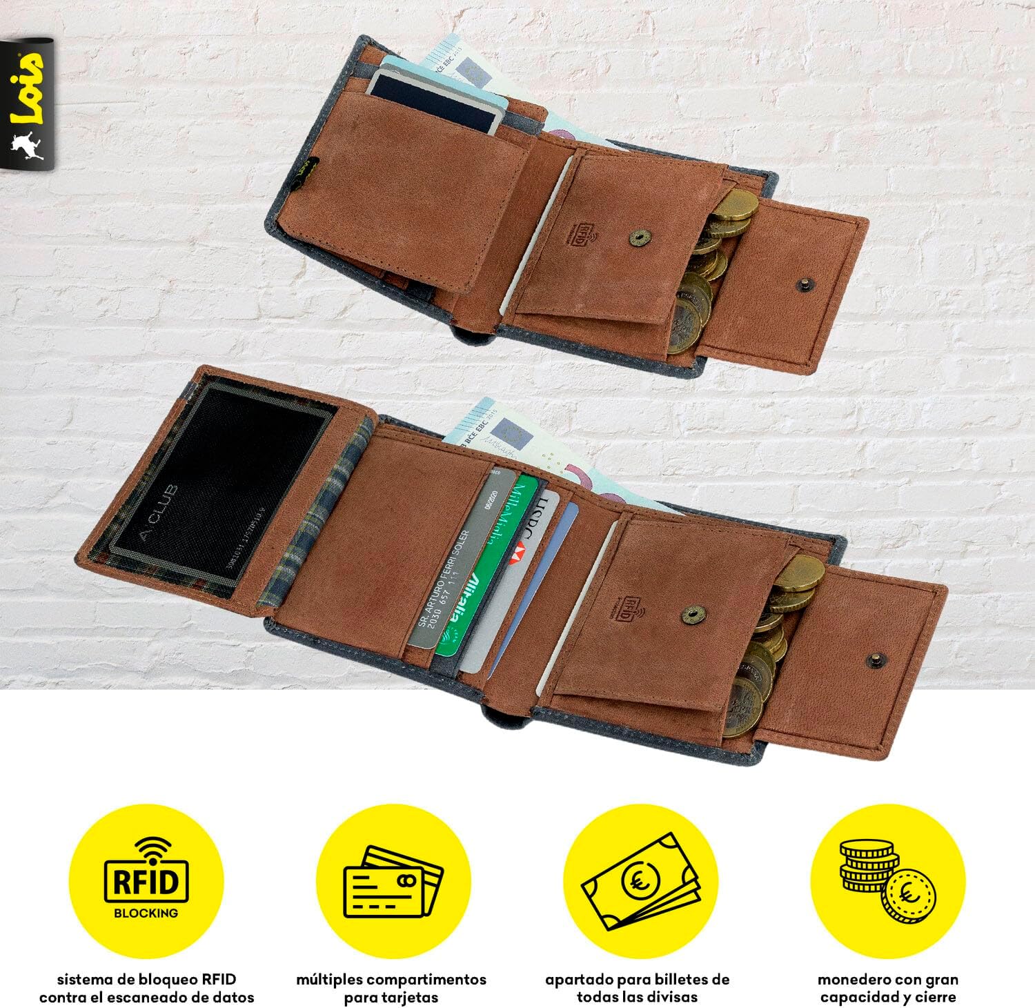 - Brieftasche herren in perfekter Grösse, um sie in Ihre Tasche zu stecken, mit optimiertem Platz für alles, was Sie brauchen.. Innere Geldbörse mit Verschluss. 9 Fächer für Karten und 2 für Banknoten