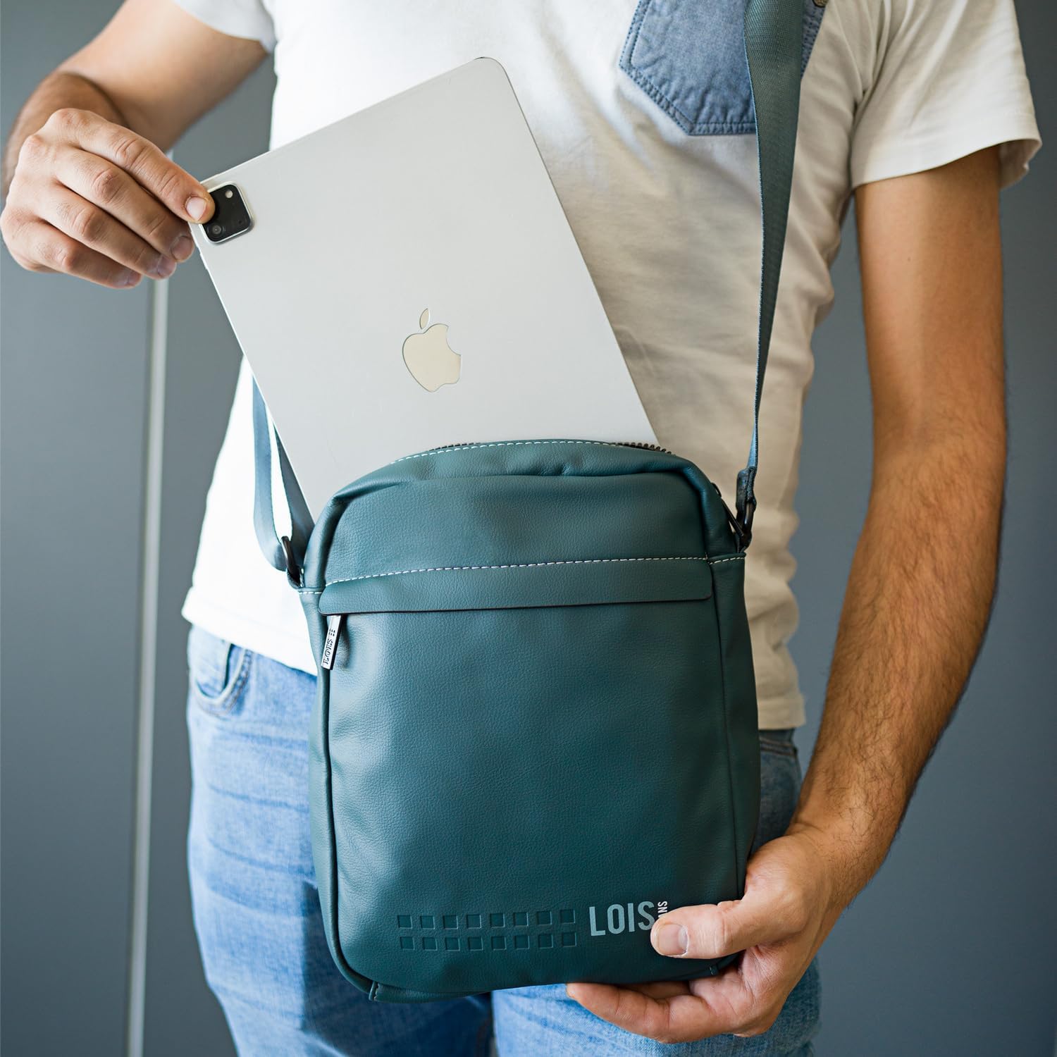 - Schultertasche herren mit hauptfach mit reissverschluss, vordertasche mit reissverschluss und innentasche mit reissverschluss. Komfort und perfekte Anpassung durch verstellbaren Gurt für den ganzen Tag bequemen Gebrauch.