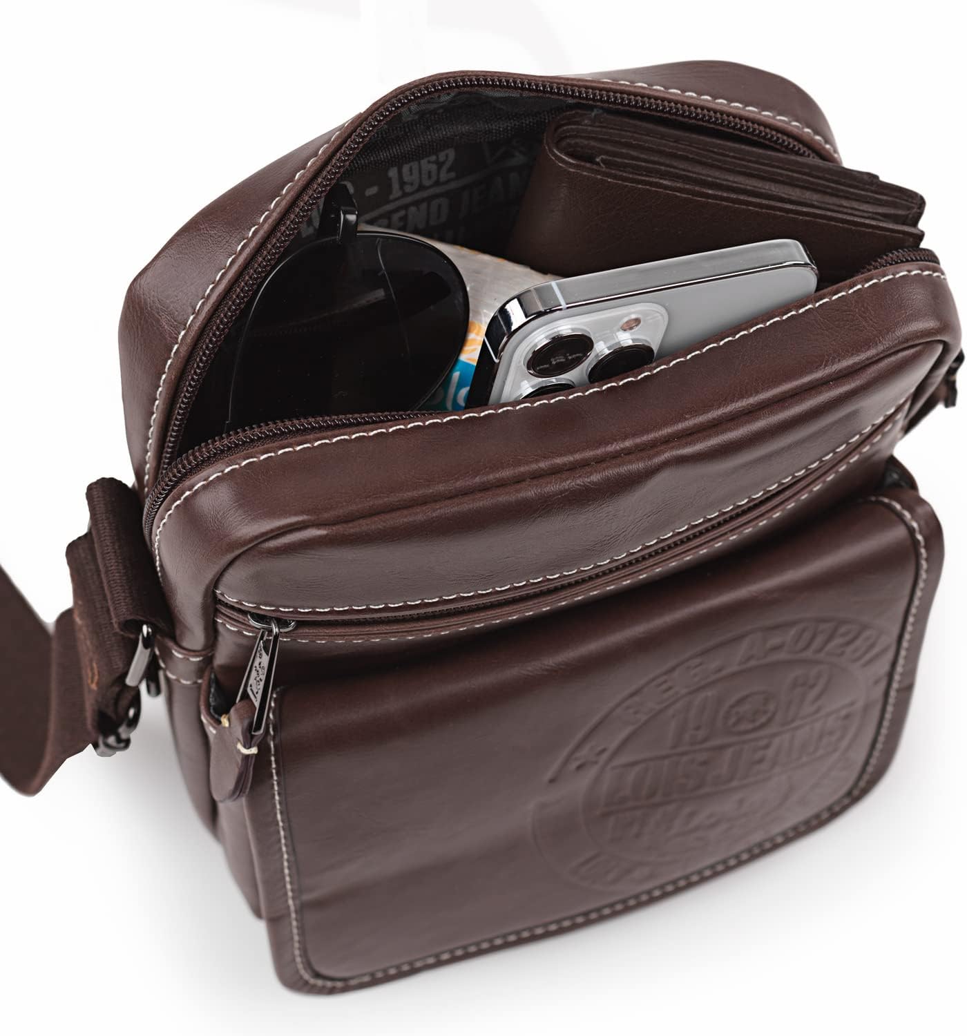 PRODUKTBESCHREIBUNGEN -Bandolera der Firma Lois. -Reissverschluss. -Aussentasche mit Reissverschluss und Klappe. -Verstellbarer Schultergriff für den Transport. -Innenfutter mit dem Logo der Marke. Masse: 18x22x6 cm. Gewicht: 0,29 kg. Material: Kunstleder.