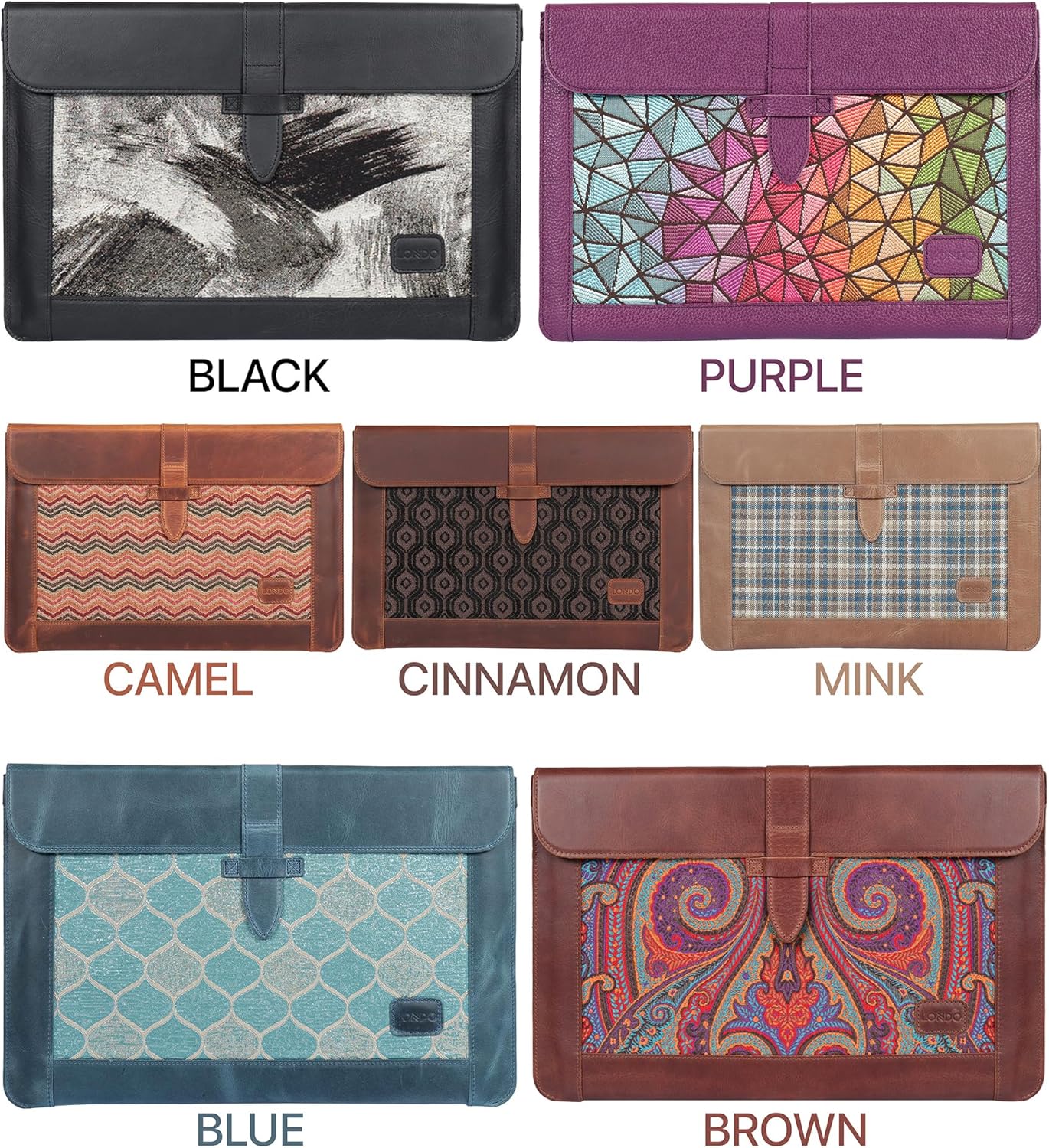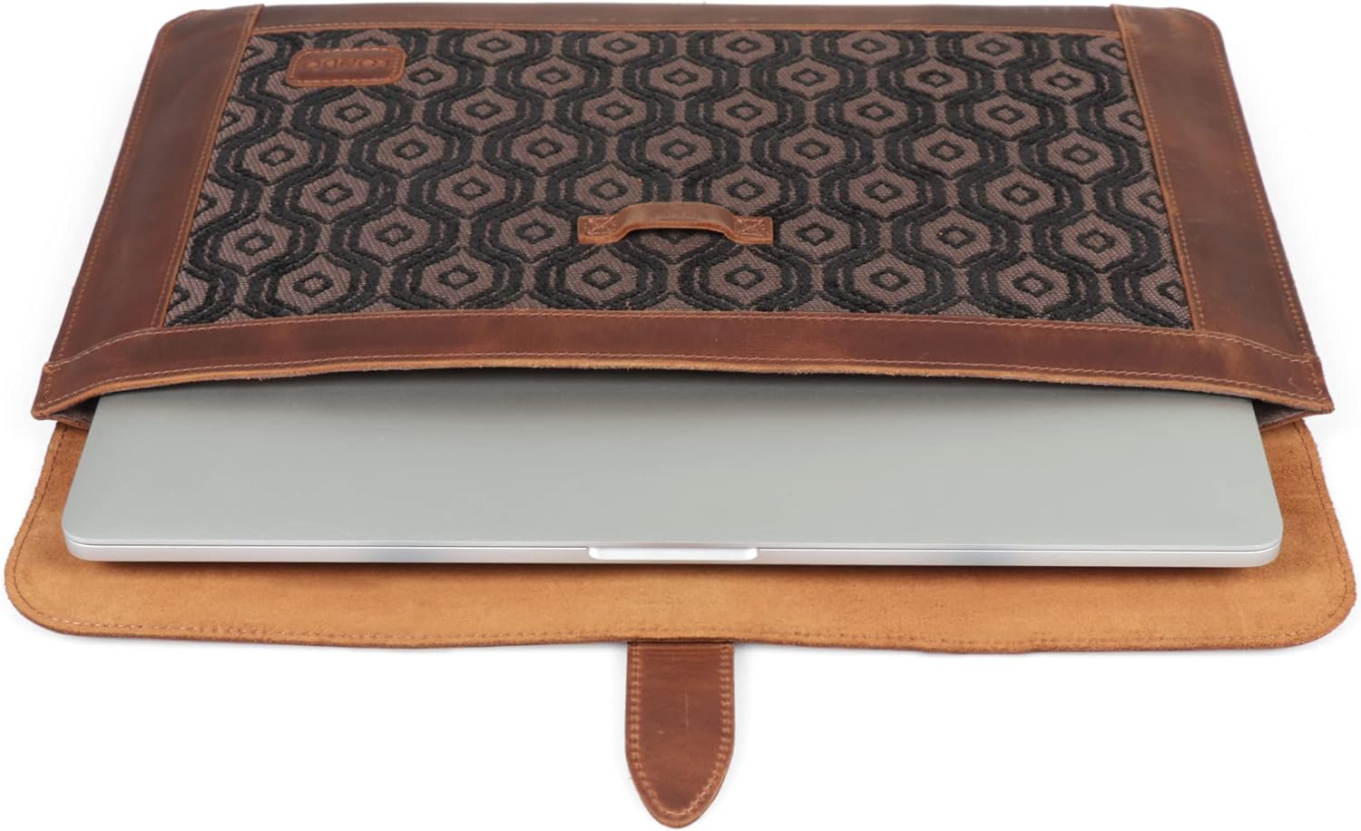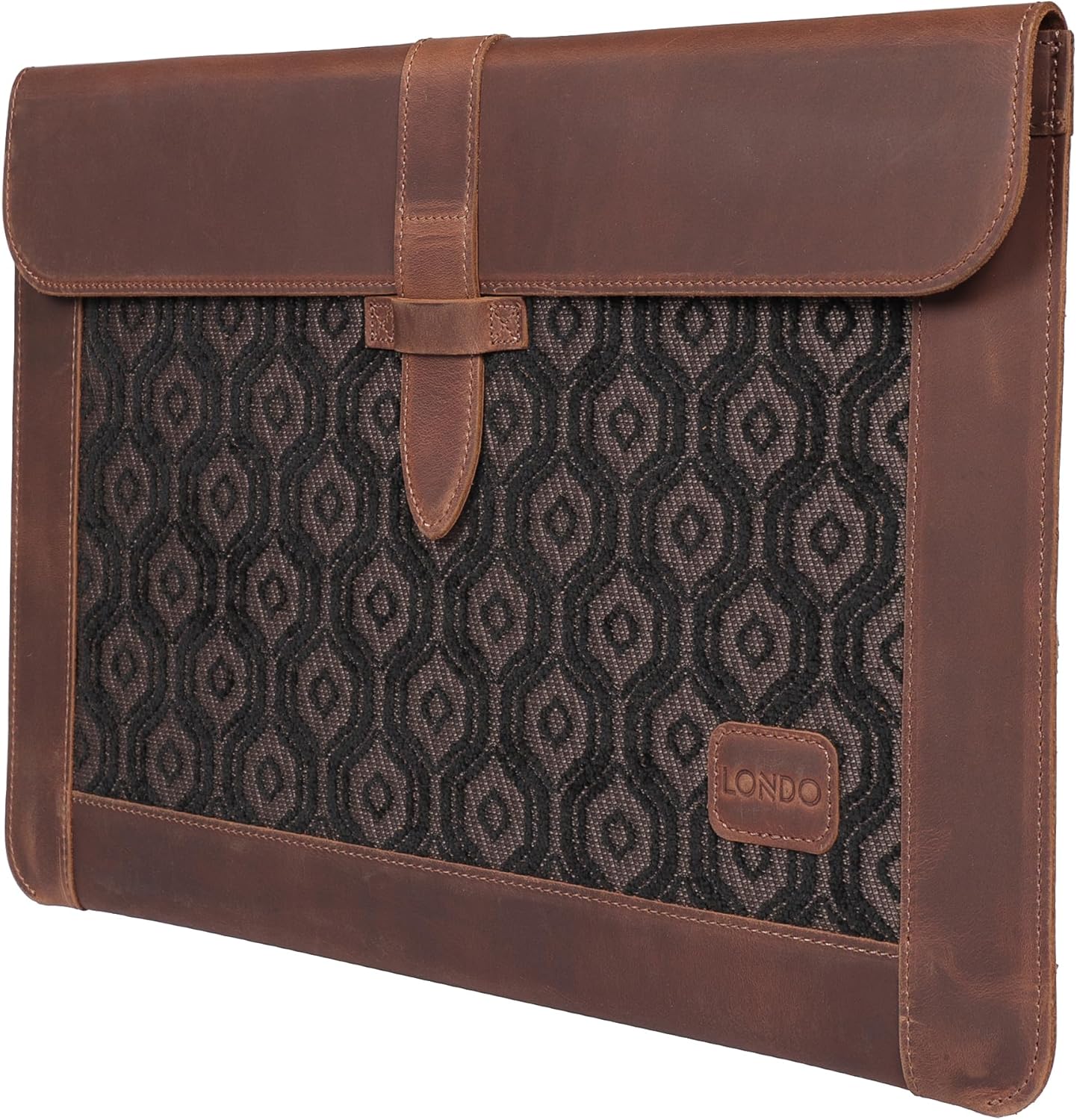 - STILVOLL – Die Londo Echtleder MacBook Pro - Air Tasche, Hülle ist in drei Varianten erhältlich. Blaue Tropfen; buntes Mosaikmuster aus gewebtem Jacquard Polyesterleinen; Ethno Braun aus gewebtem Leinen. Wählen Sie den Stil, der am besten zu Ihrer