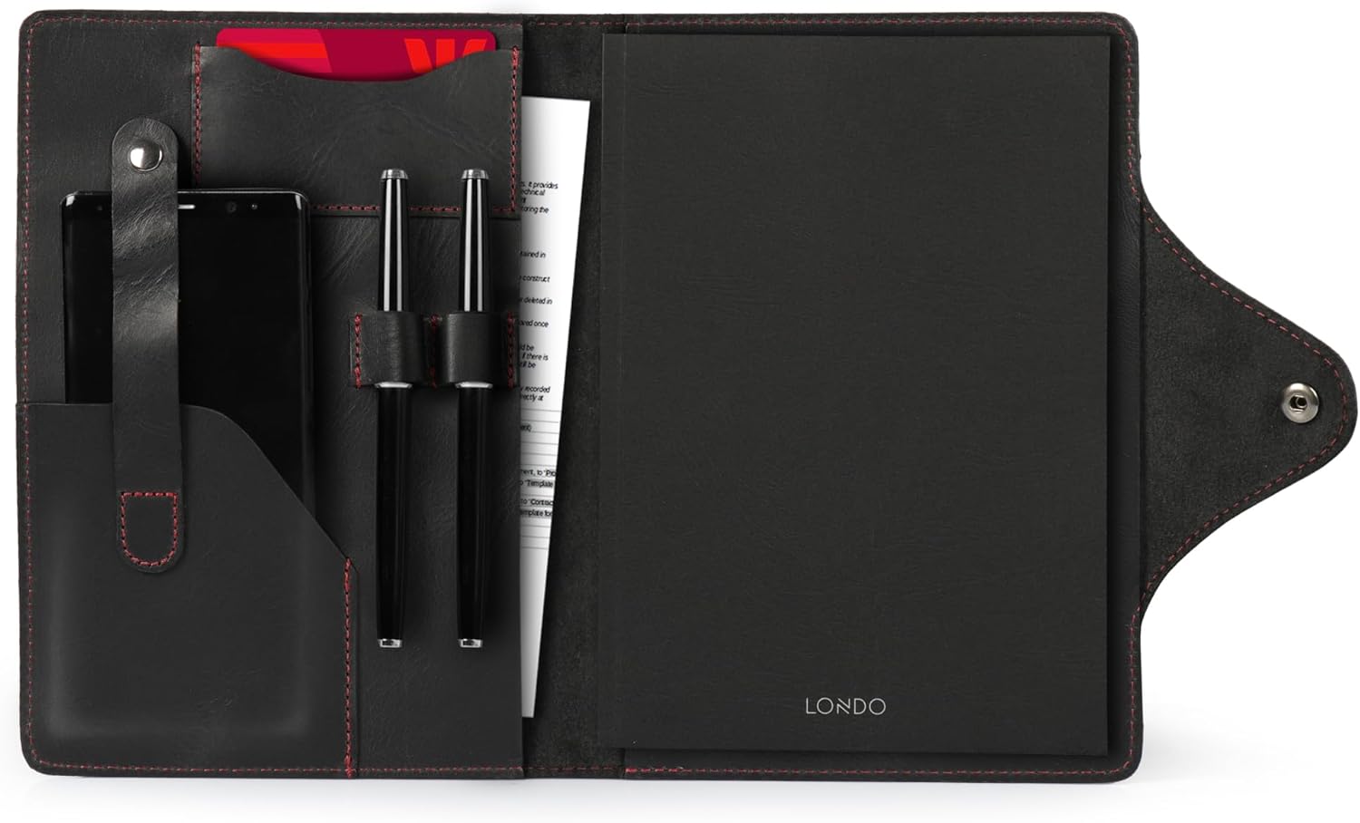 - ALLE WICHTIGEN DINGE AN EINEM ORT – Das Londo-Portfolio wurde entwickelt, um alle wichtigen Dinge in einem kompakten Raum unterzubringen. Mit 1 Notebook-Halter, 1 Fach für Ausweise und Kreditkarten, 1 Handyfach, 2 Stift- und Bleistiftschlitze und 1