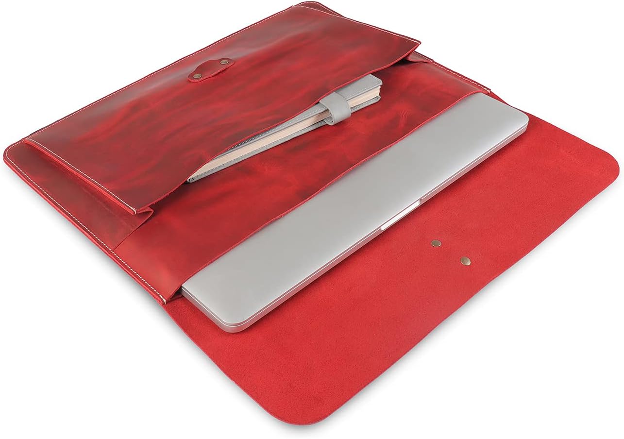 - ZEITLOSER, ECHTER NARBENLEDER-STIL: Unsere Macbook Pro 13 Tasche wird mit viel Liebe zum Detail von Hand gefertigt und besteht aus hochwertigem Narbenleder für einen klassischen Vintage-Look. Als rundum perfektes Modeaccessoire werden Sie die