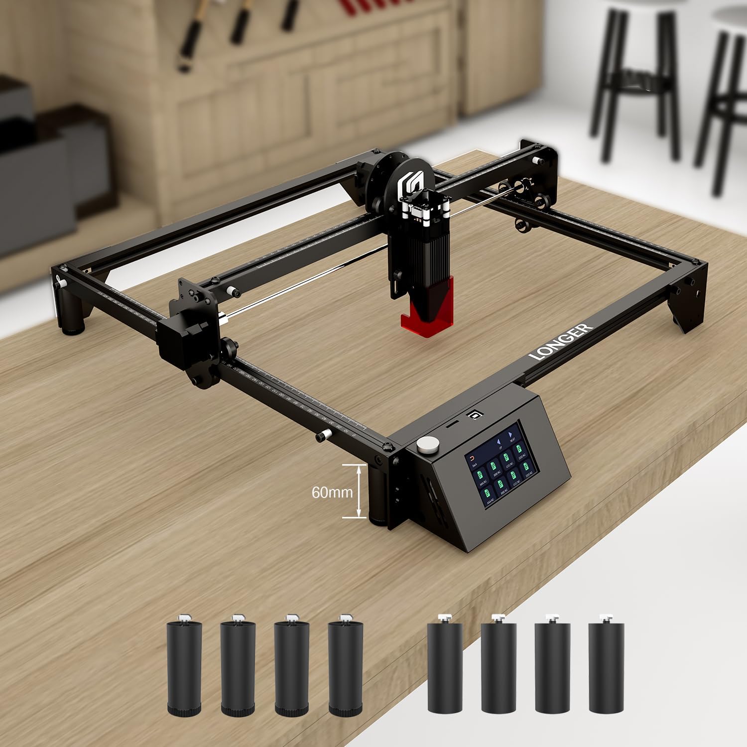 - 【Exklusiv für RAY5】 Diese 8 Erhöhungsfüsse wurden speziell für den LONGER RAY5 Laser-Gravierer und -Schneider entwickelt. Sie erhöhen die Arbeitshöhe Ihres Geräts zuverlässig und ermöglichen so das Bearbeiten von deutlich höheren Objekten,
