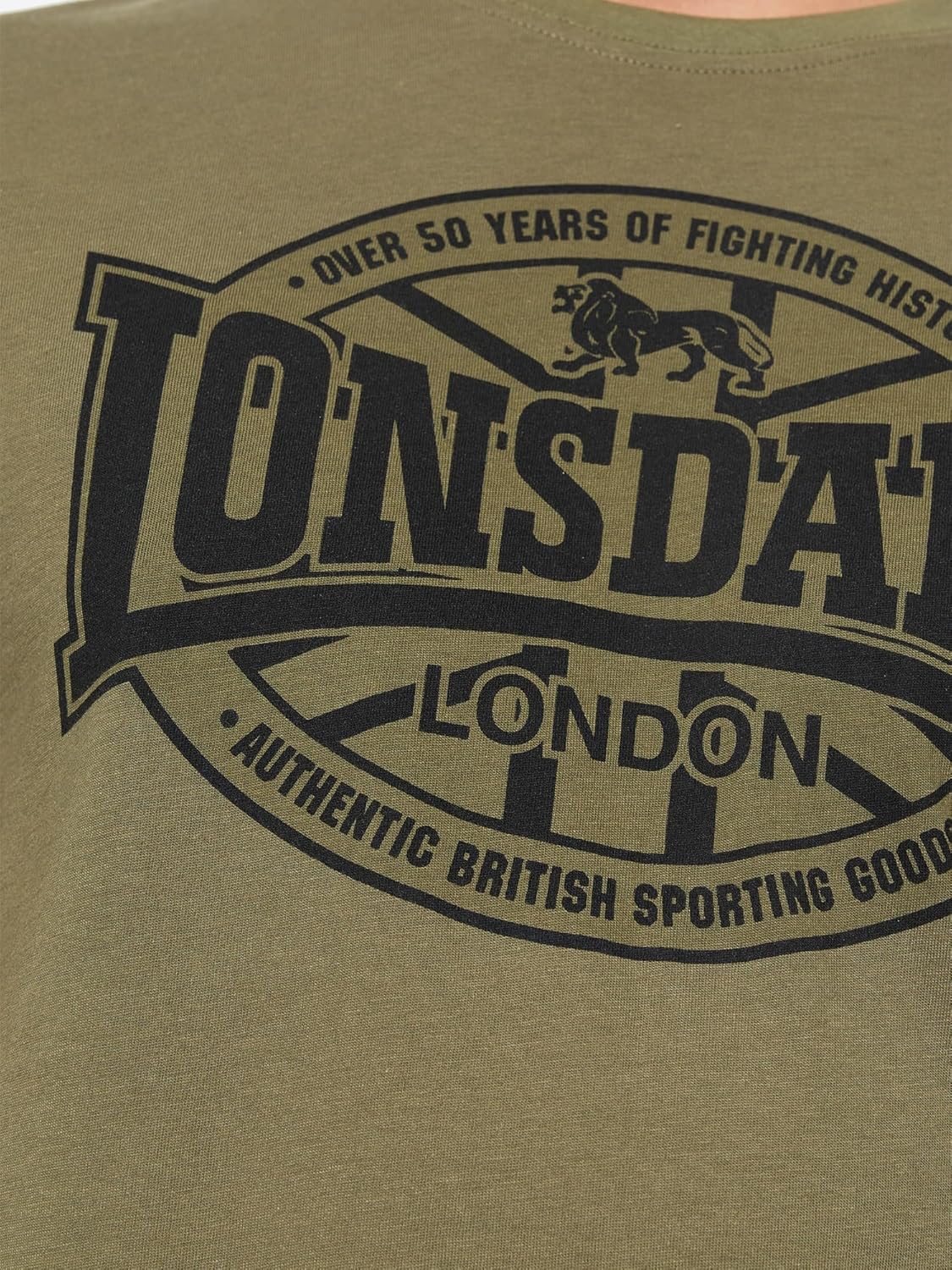 PRODUKTBESCHREIBUNGEN Britische Lässigkeit im Doppelpack: die T-Shirts von Lonsdale im 2er-Pack ziehen alle Blicke auf sich. Das Doppelpack enthält ein schwarzes T-Shirt mit weissem Logo auf der Brust und ein olivfarbenes T-Shirt mit schwarzem Druck. Dank des klassischen Rundhals-Ausschnittes und der geraden Passform liegen die Modellel bequem am Körper an.