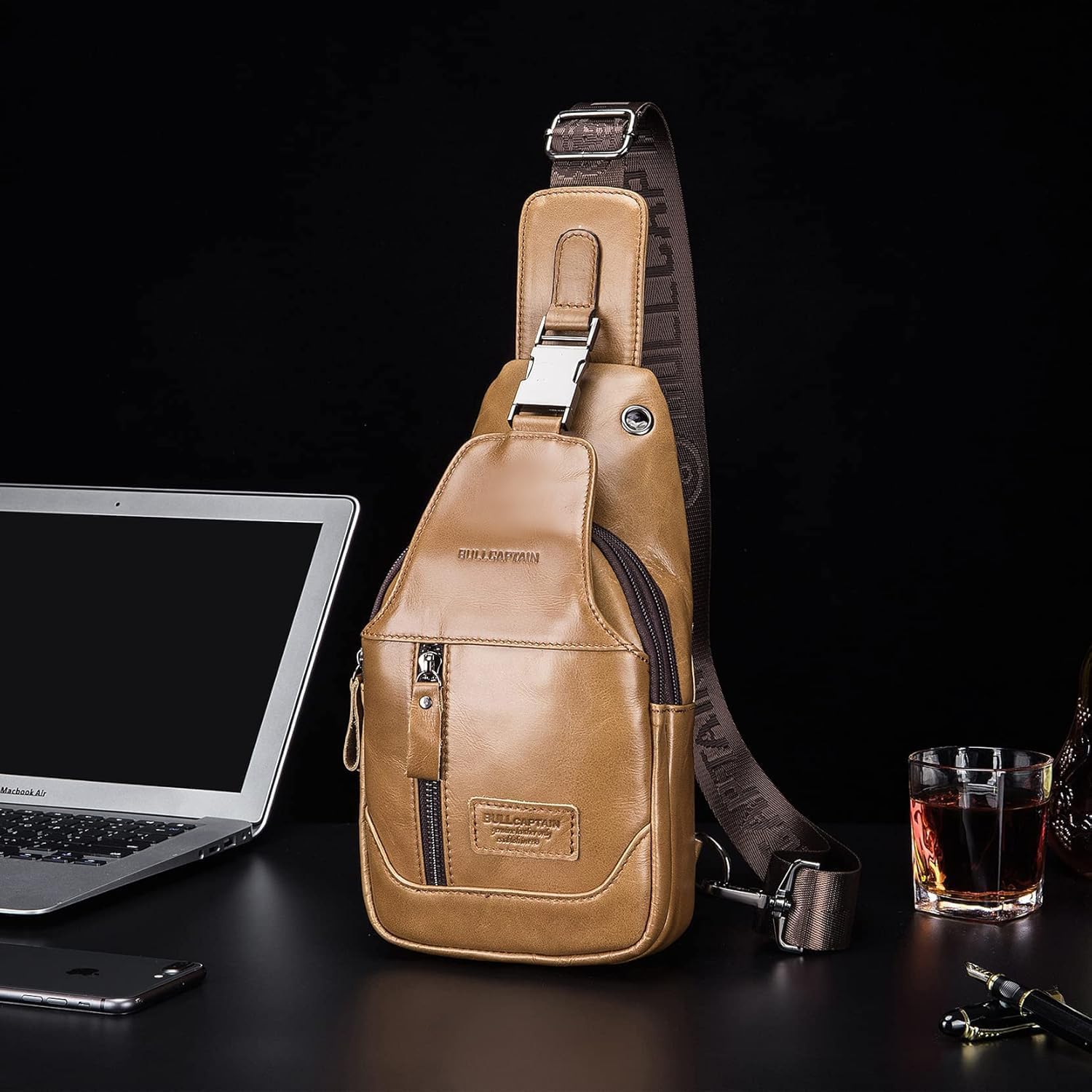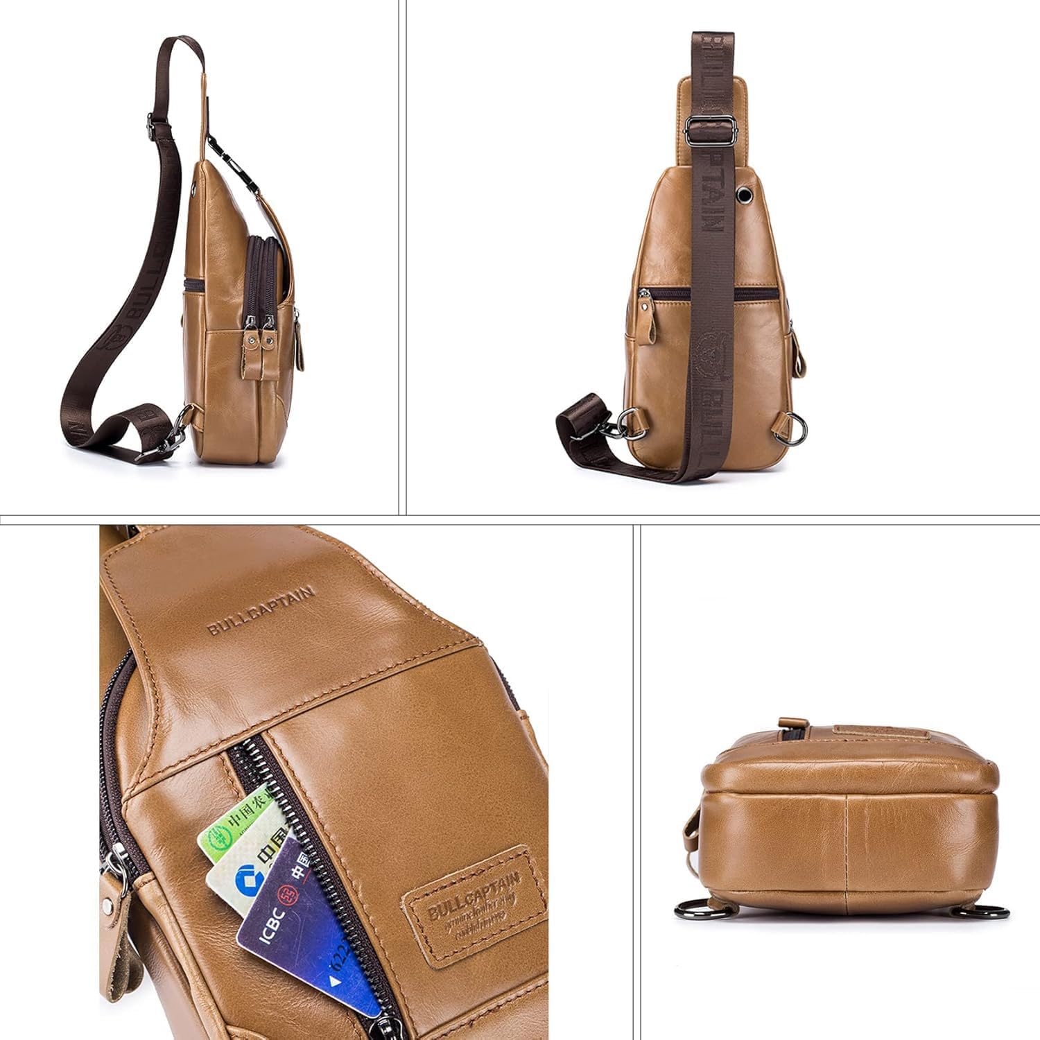 - √►Hochwertiges Material: Original-Qualität, professionelle Zertifizierung, diese Männer Leder Brust Tasche ist aus 100% echten handgefertigten hochwertigen weichen ersten Schicht Rindsleder, mit wasserdichtem Stoff, starke Beständigkeit gegen