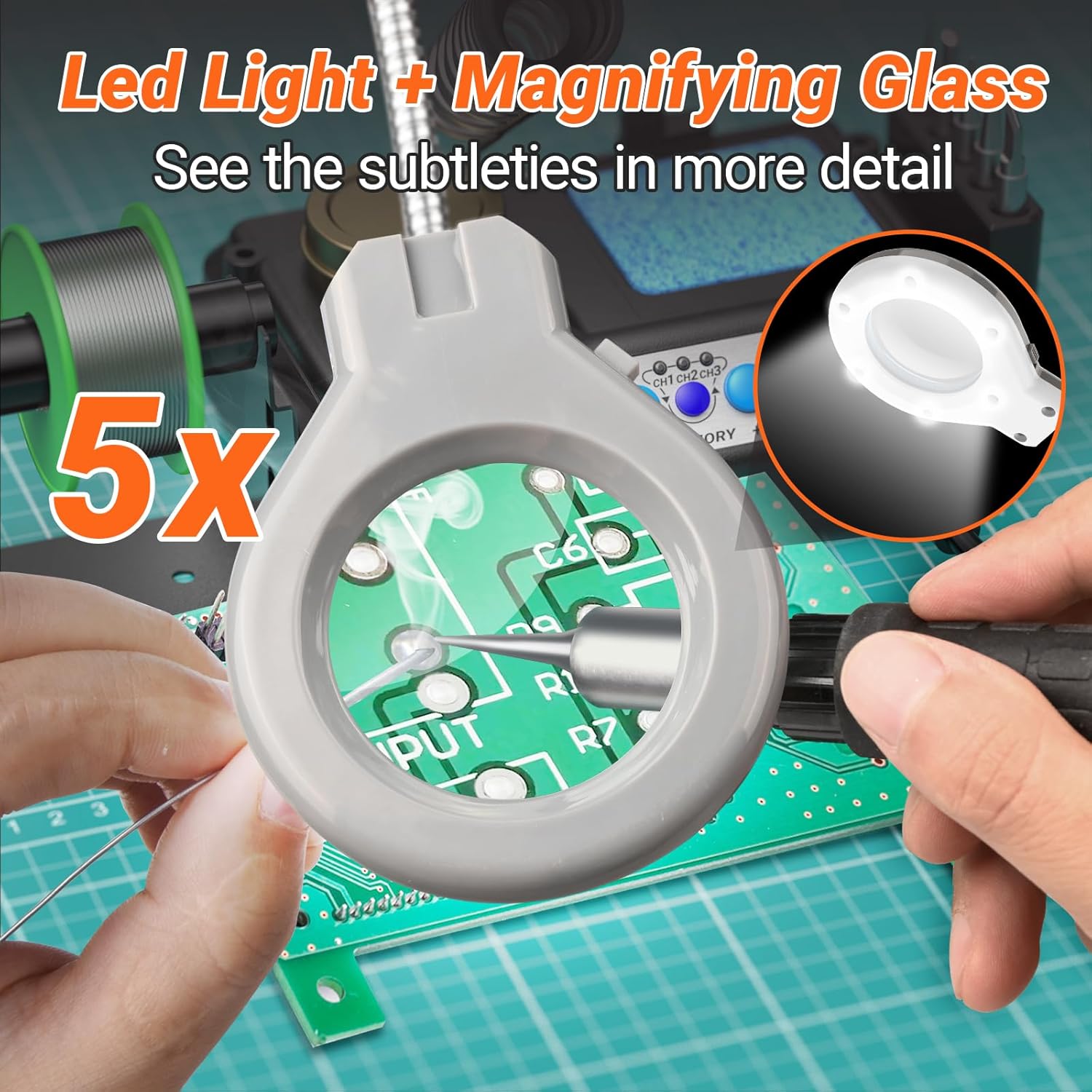 - 【5X Lupe】 -- Mit 5x Lupe und LED-Licht, sehen Sie klarer, geeignet für feine Operationen, machen Sie Ihre Arbeit effizienter und einfacher.