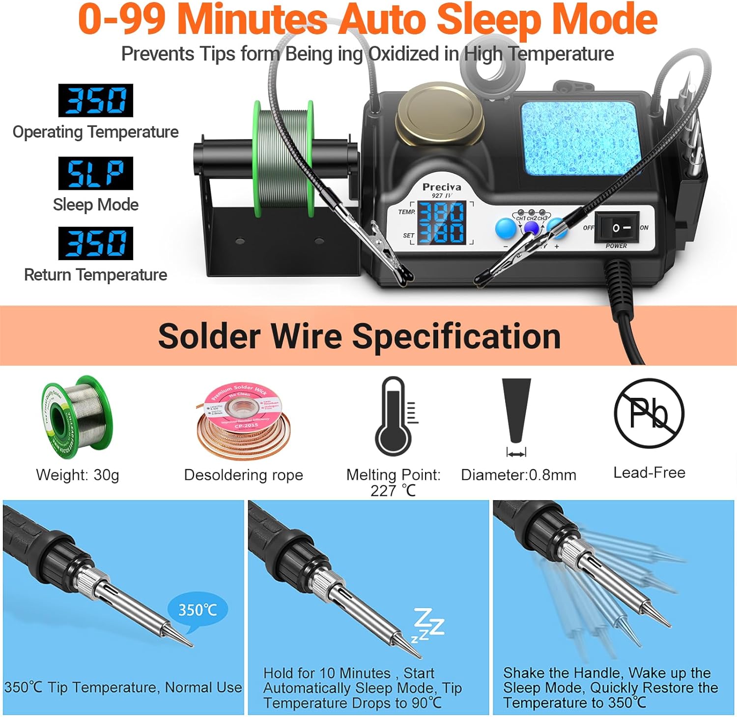 - 【Effizienter Lötkolben】-- 130W Lötstation, schnelle Heizung Keramikkern, kann 300℃ in 15 Sekunden erreichen. Vier Kühlöffnungen sorgen für eine schnelle Wärmeableitung. Mit dem schnellen Heiz- und Kühlsystem kann die Preciva 927IV