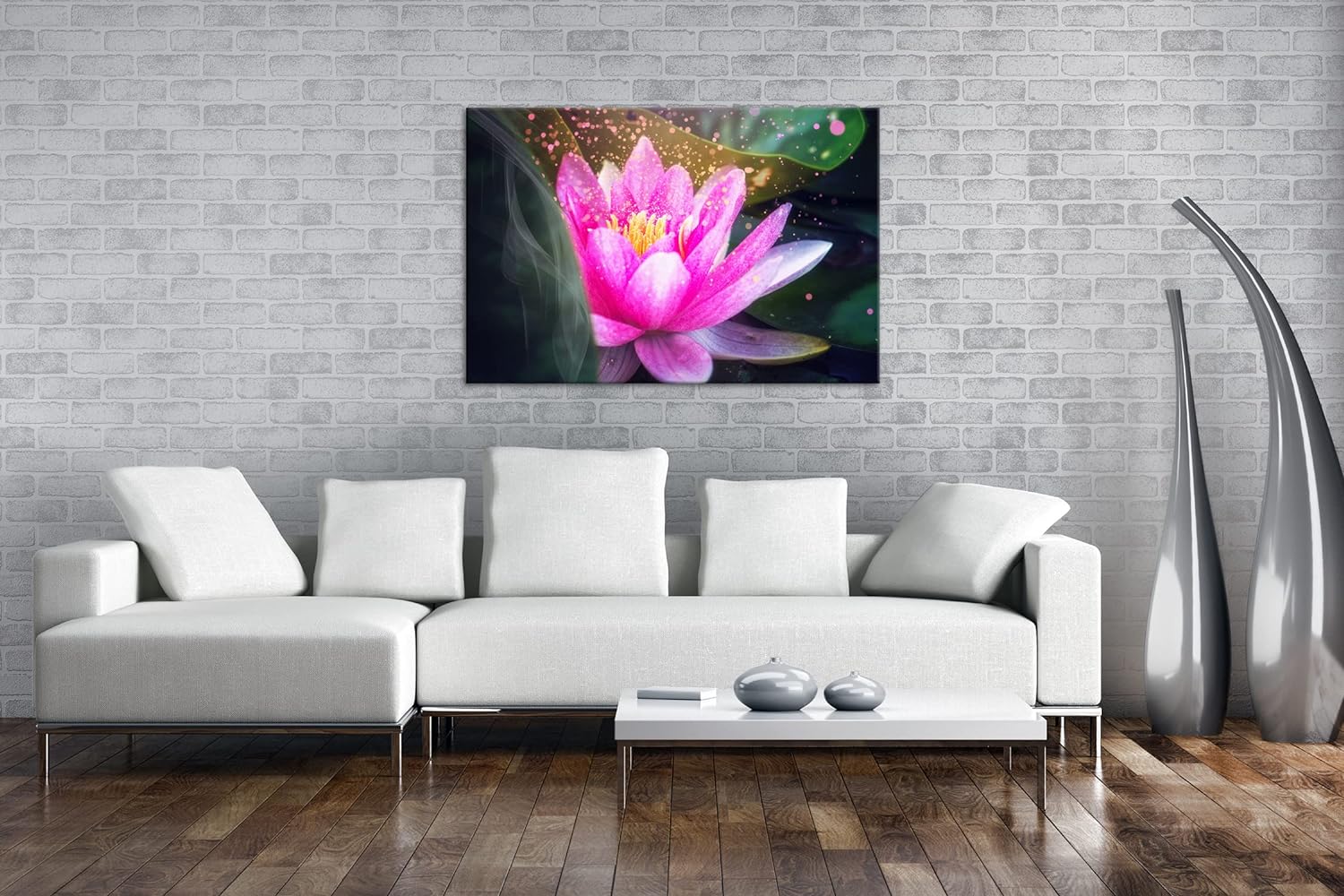 Lotus Seerose Format: 120x80 als Leinwandbild, Motiv fertig gerahmt auf Echtholzrahmen, Hochwertiger