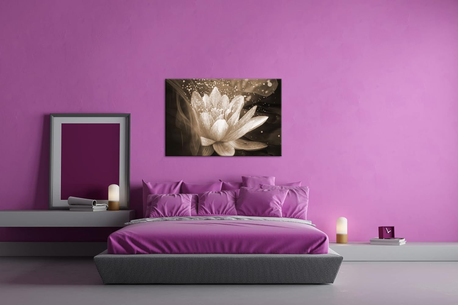 Lotus Seerose Format: 80x60 Effekt: Sepia als Leinwandbild, Motiv fertig gerahmt auf Echtholzrahmen,