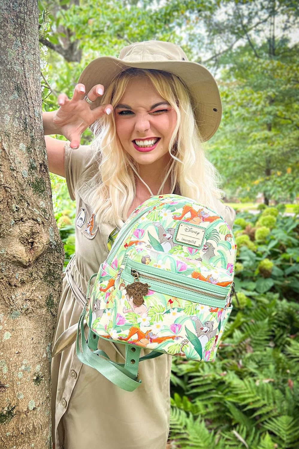 PRODUKTBESCHREIBUNGEN Vergessen Sie Ihre Sorgen und Ihren Streit mit der Bande aus The Jungle Book! Der 707 Street Exclusive – Loungefly Disney-Dschungelbuch-Freunde-Mini-Rucksack verfügt über einen wunderschönen Aquarell-Allover-Druck Ihrer Lieblings-Charaktere aus dem Animationsfilm, umgeben von tropischen Pflanzen. Schauen Sie genau hin und Sie können Mowgli, Baloo, Kaa und mehr erkennen. Sie finden sogar einen Shere Khan Reissverschluss. Diese Tasche verfügt auch über mehrere Staufächer, verstellbare Riemen und Messingbeschläge. Es ist der perfekte Reisebegleiter für all Ihre Dschungel-Abenteuer