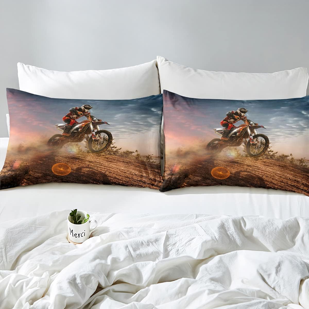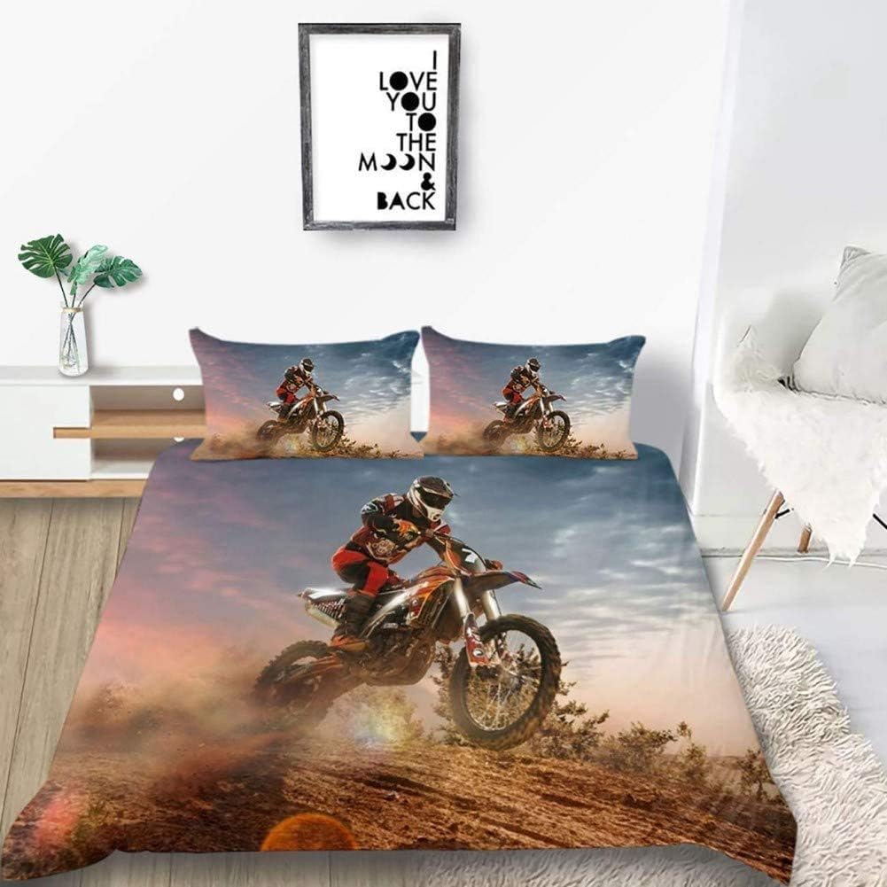 Loussiesd 3D Motorrad Druck Bettwäsche Set Offroad Extremsport Super Weich Bettbezug Set Kinder Jung