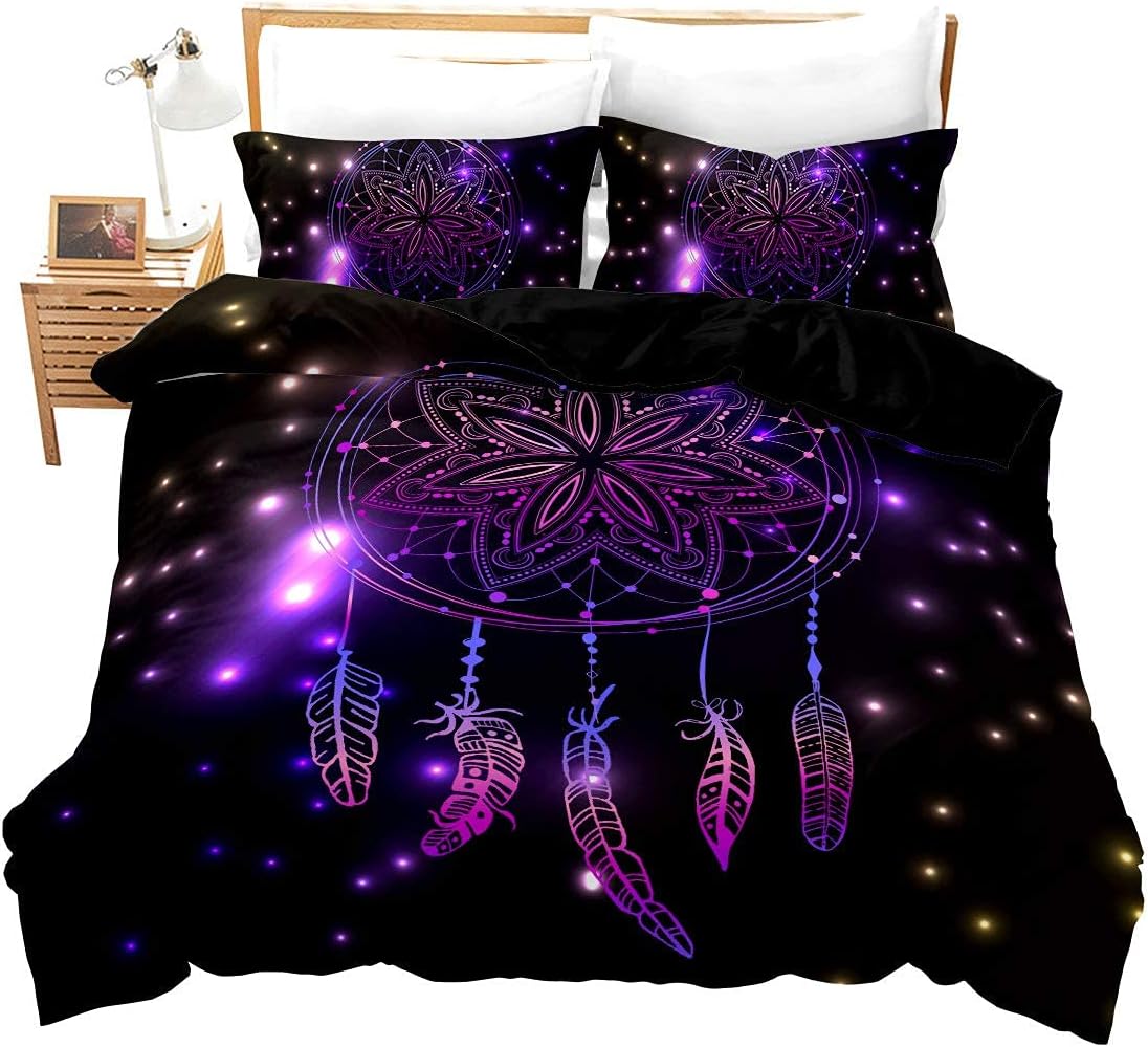 Loussiesd Lila Traumfänger Bettwäsche Set 135x200cm Mädchen Frau Böhmen Feder Bettbezug Set Stammes
