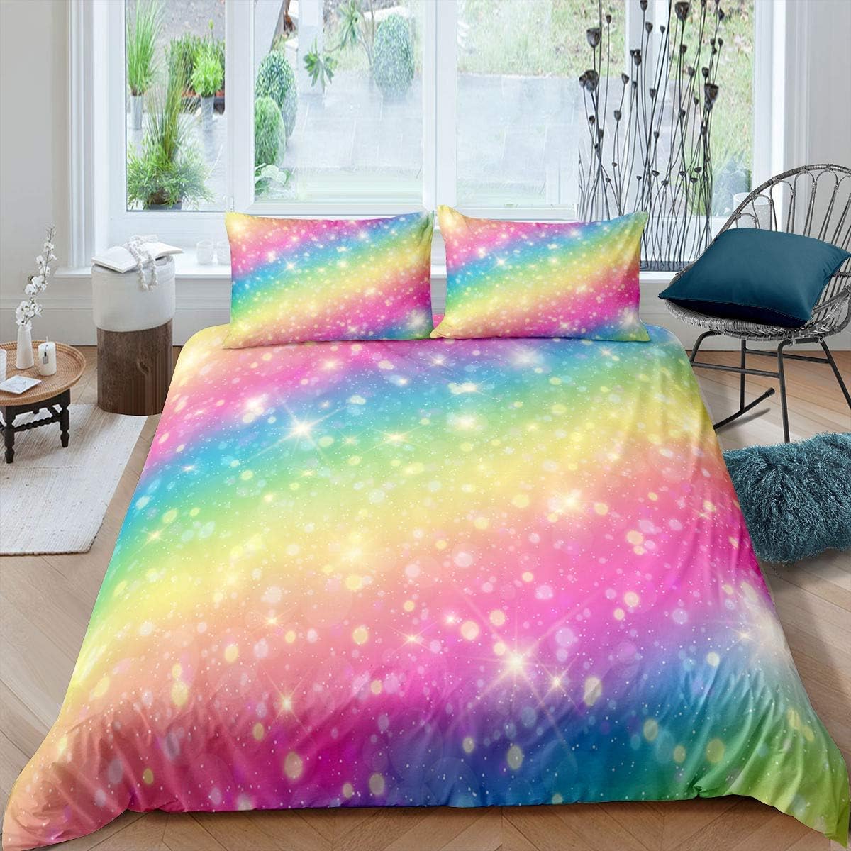 Loussiesd Regenbogen Farbe Tröster Bettwäsche 135x200 cm Mädchen Kinder Blingling Dekor Bettwäsche S