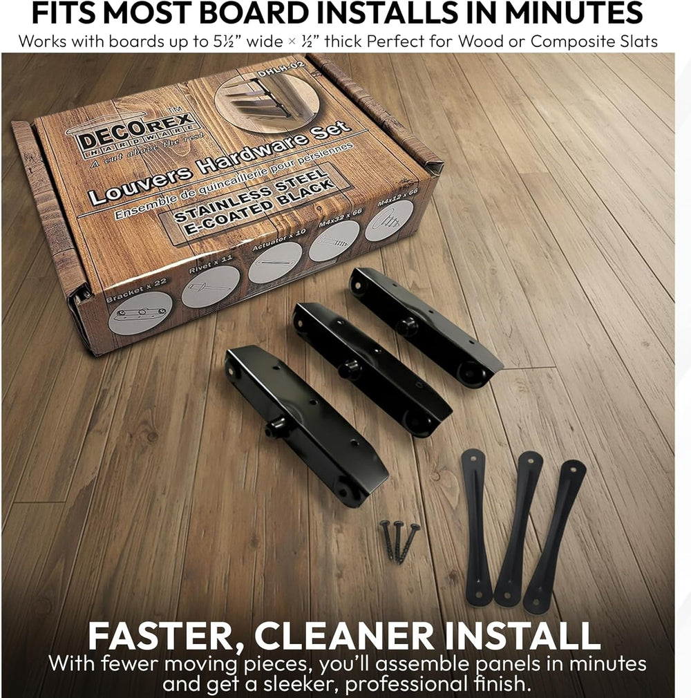- Set enthält: 22 Halterungen, 10 Stellantriebe und Schrauben. Ein Set ermöglicht die Montage von bis zu 11 Holzbrettern / Latten (das Produkt enthält keine Holzbretter / Lamellen)