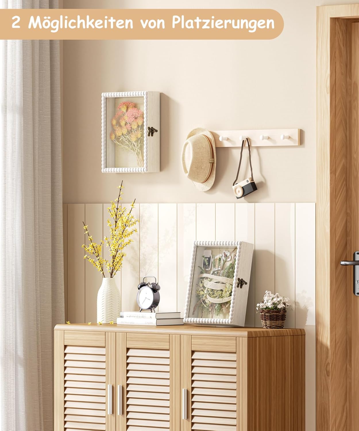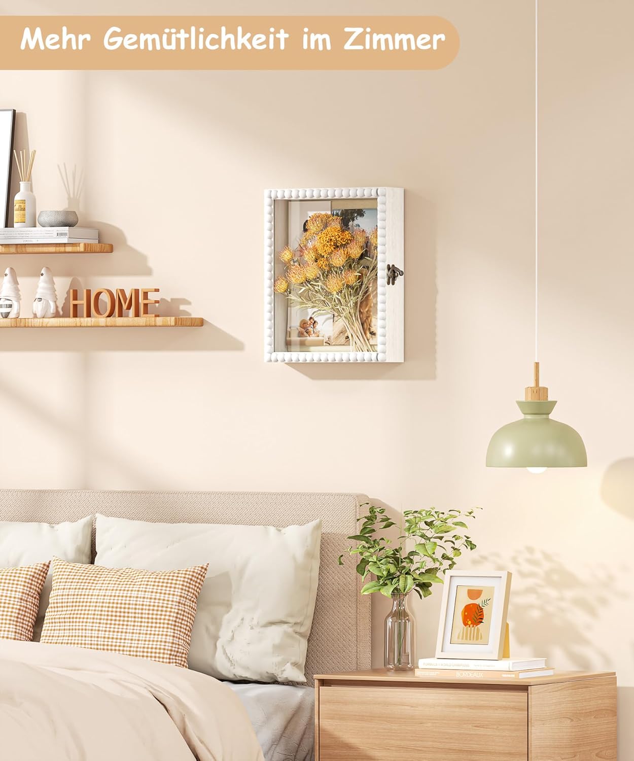 • 【Bilderrahmen 3D mit Holzperlen Design】Der Holzrahmen ist von massiven Holzperlen umgeben, die für Einfachheit und Eleganz sorgen, Objektrahmen mit einem Vintage-Klappschloss für zusätzliche Sicherheit und um zu verhindern, dass der Inhalt