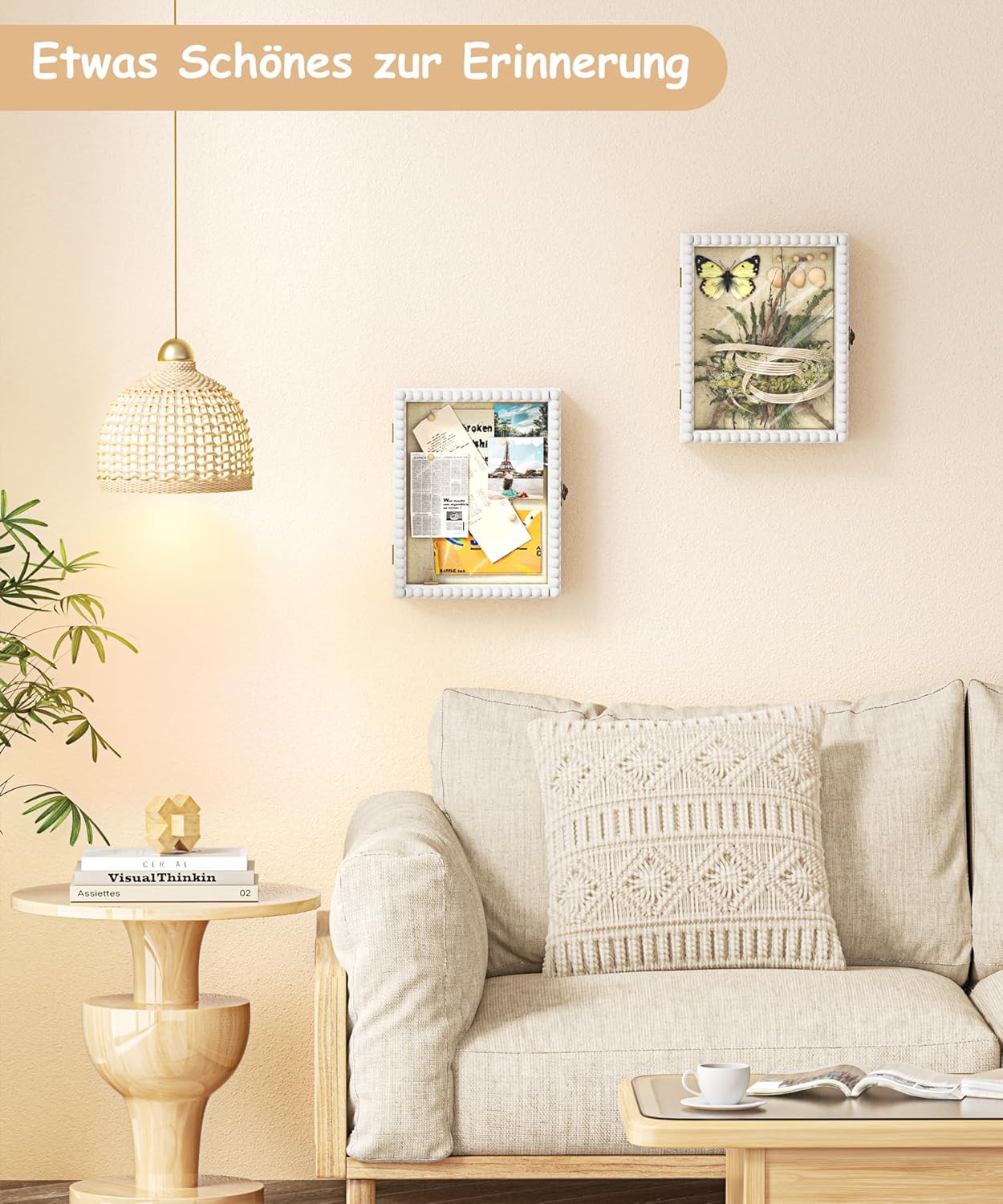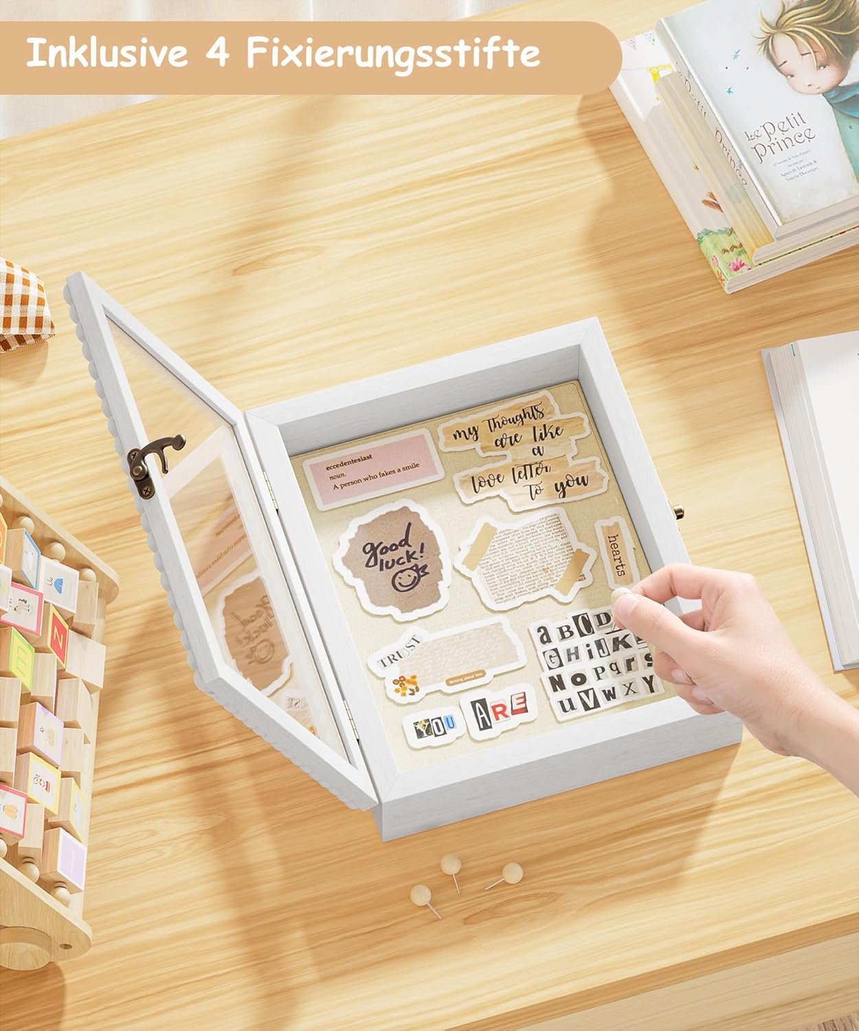 • 【Erinnerungsbox zeigen Sie Ihre Kreativität】 Im Rahmen befindet sich ein Leinentuch mit 4 Stecknadeln. Sie können Fotos, Karten, Muster, Tickets, Babyhand oder Fussabdrücke, Andenken an Haustiere, Konzertkarten, Medaillen, Blumensträusse, Blumen
