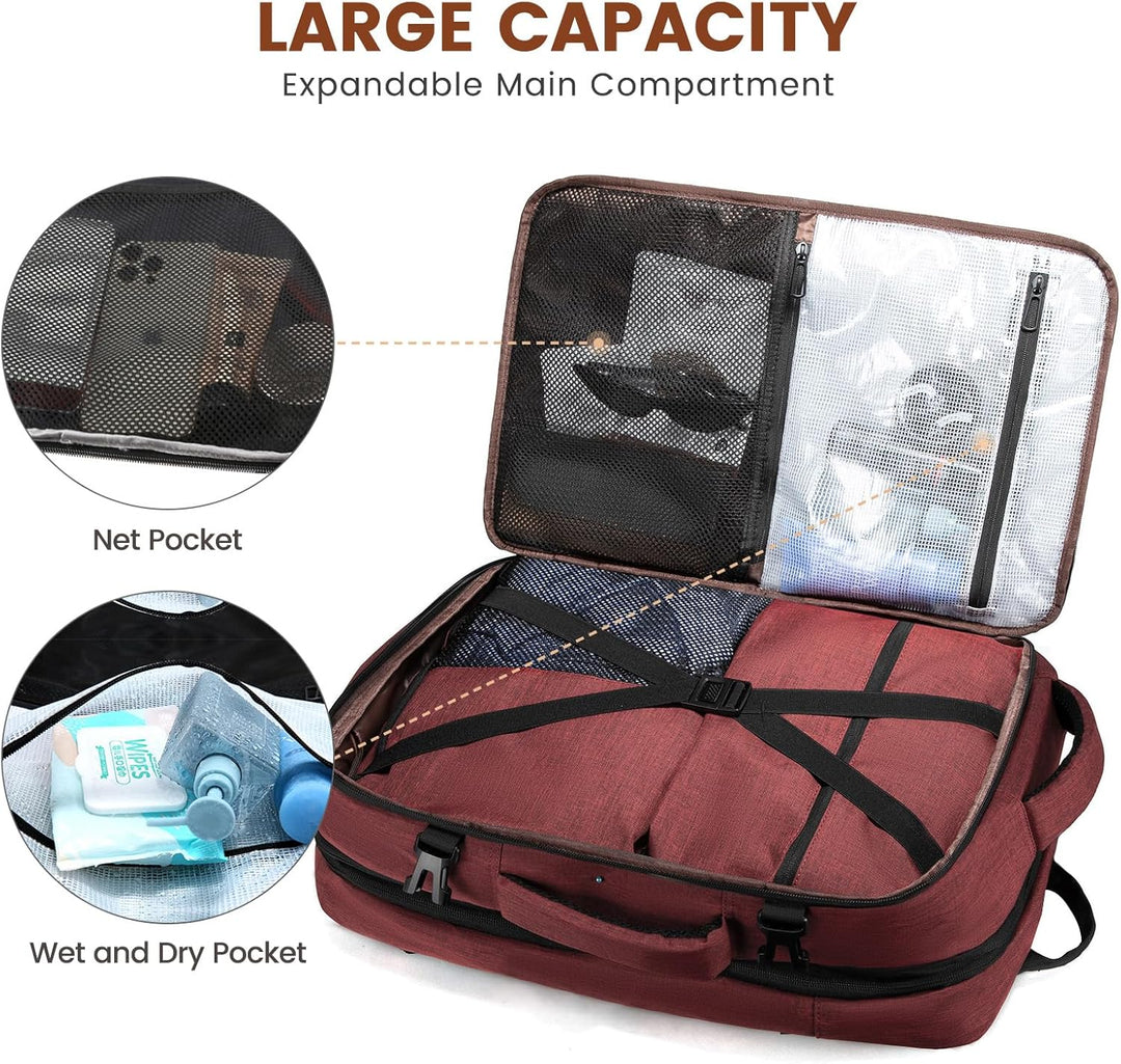 - 【3 Tragemöglichkeiten und 3 individuelle Taschen】: Verwendung als travel Backpack, Flug geprüfter Rucksack oder Tragetasche. Mit zwei Griffen oben und an der Seite des Cabin Bag Handtasche kann er vertikal oder horizontal getragen werden.