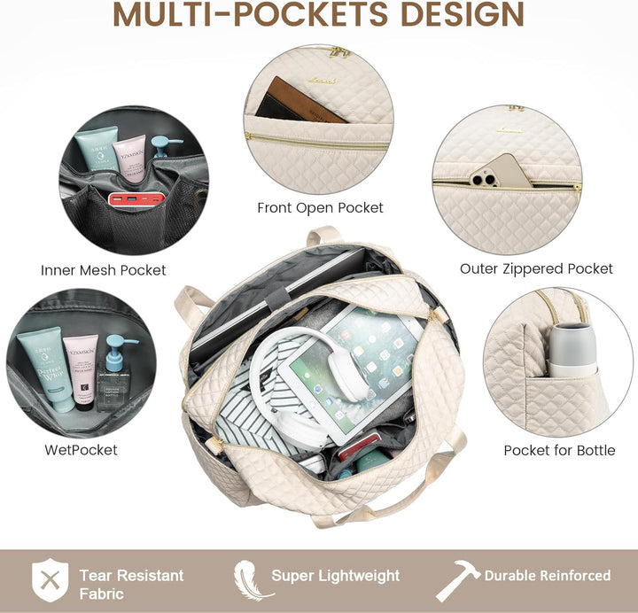 - Nass- und Trockentrennungs-Handtasche + Kostenlose Separate Kosmetiktasche: 1. Wird mit einem Kulturtaschen geliefert, dies ist LOVEVOOKs neuestes verbessertes Kombinations Weekender Reisetasche Set. 2. Fügen Sie eine separate Nasstasche und einen