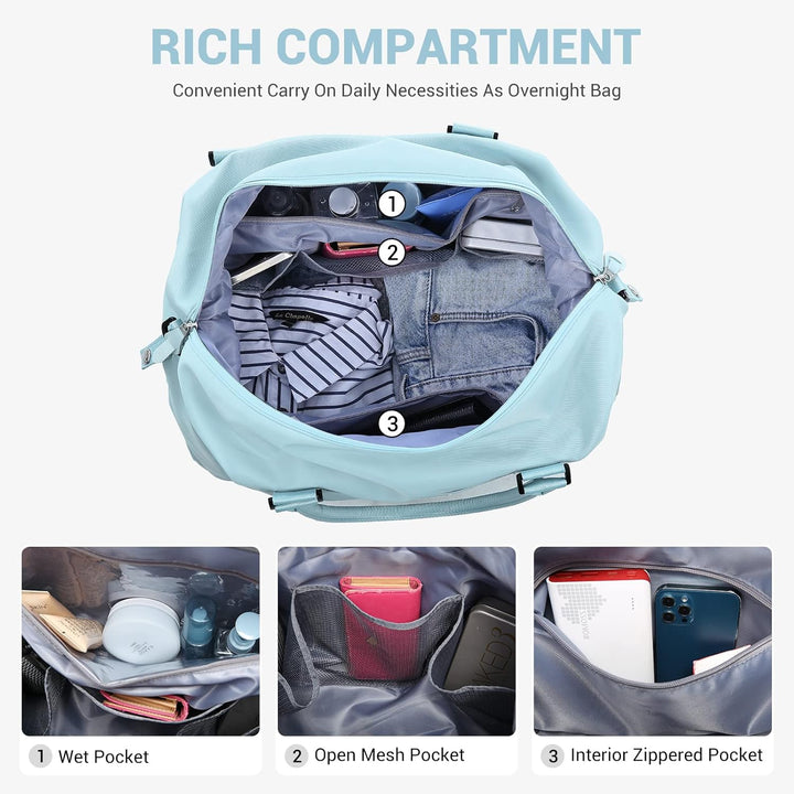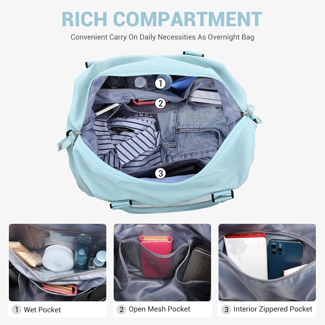 - ✮ Kostenlose Separate Kosmetiktasche + Nass- und Trockentrennungs-Handtasche✮ 1. Wird mit einem Kulturtaschen geliefert, dies ist LOVEVOOKs neuestes verbessertes Kombinations Weekender Reisetasche Set. 2. Fügen Sie eine separate Nasstasche und einen