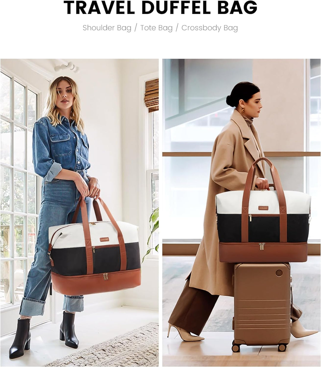 - 【Travel Essentials Duffel Bag】 1 grosser Kapazität Reisetasche + 1 Kulturtasche + 1 Kleidersack. Bietet zwei bequeme Tragegriffe, und gepolstertem, abnehmbarem Schultergurt. Perfekt für Urlaub, Kurztrips, Wochenendausflüge, Camping, Strand,