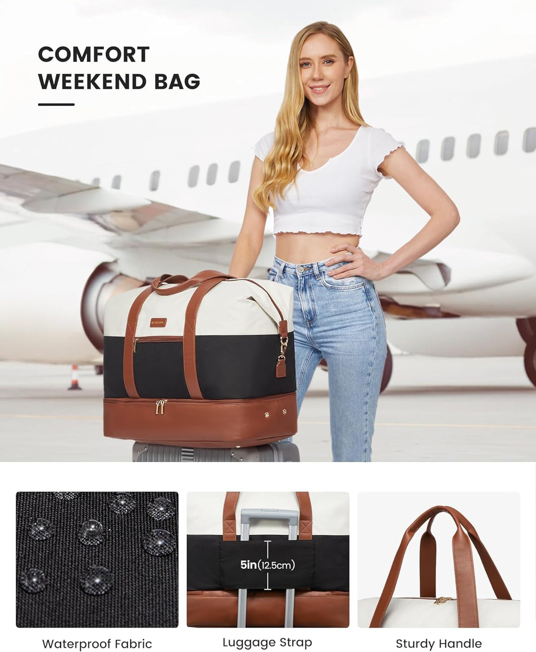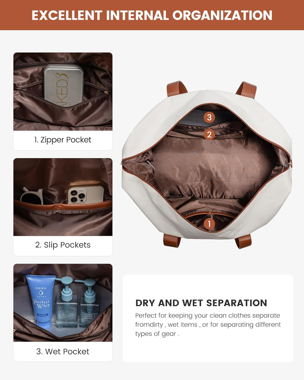 - 【Trocken und Nassgetrennte Weekender Bag】die Tragetasche mit einer wasserdichten Nasstasche mit hoher Dichte im Hauptfach, die Ihnen helfen kann, trockene und nasse Gegenstände zu trennen, wenn Sie nasse Kleidung oder ein Handtuch haben, können Sie