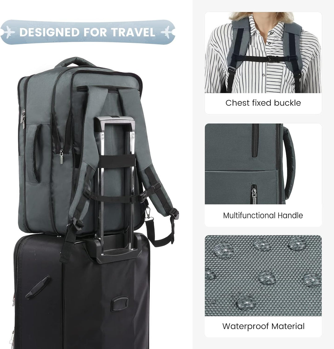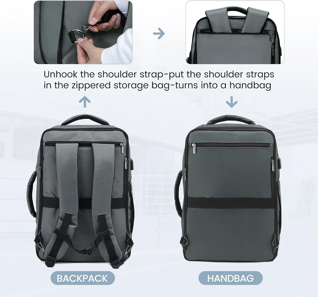 - 【Abnehmbares Design und vielfältige Tragemöglichkeiten】: Der Reiserucksack hat ein flexibler Stauraum von 30-40 Litern und kann je nach Flugbestimmungen und Reisebedarf angepasst werden. Verdeckbare Gurte und 2 Tragegriffe ermöglichen die