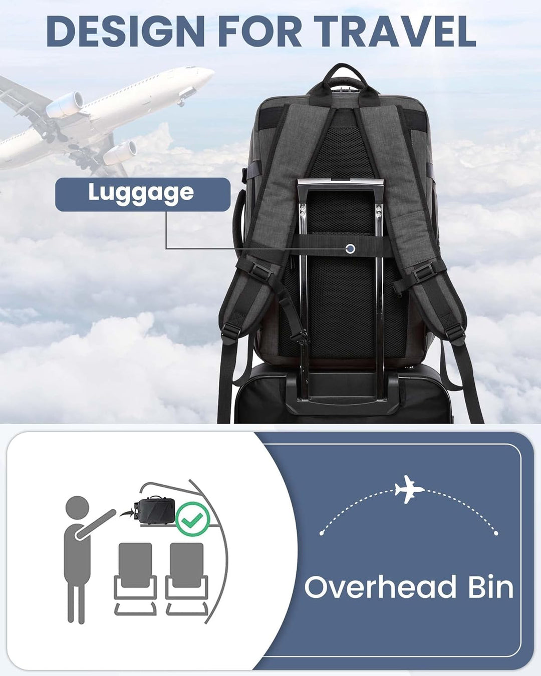 - 【3 Tragemöglichkeiten und 3 individuelle Taschen】: Verwendung als travel Backpack, Flug geprüfter Rucksack oder Tragetasche. Mit zwei Griffen oben und an der Seite des Cabin Bag Handtasche kann er vertikal oder horizontal getragen werden.