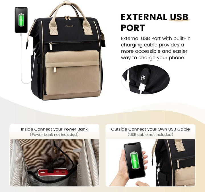 - USB-Ladeanschluss:Der Arbeitsrucksack verfügt über einen USB-Ladeanschluss und einem internen Ladekabel, so dass Sie Ihr Telefon ganz einfach aufladen können, wenn Sie mit dem Rucksacktasche unterwegs sind, ohne das Powerbank in der Hand halten zu