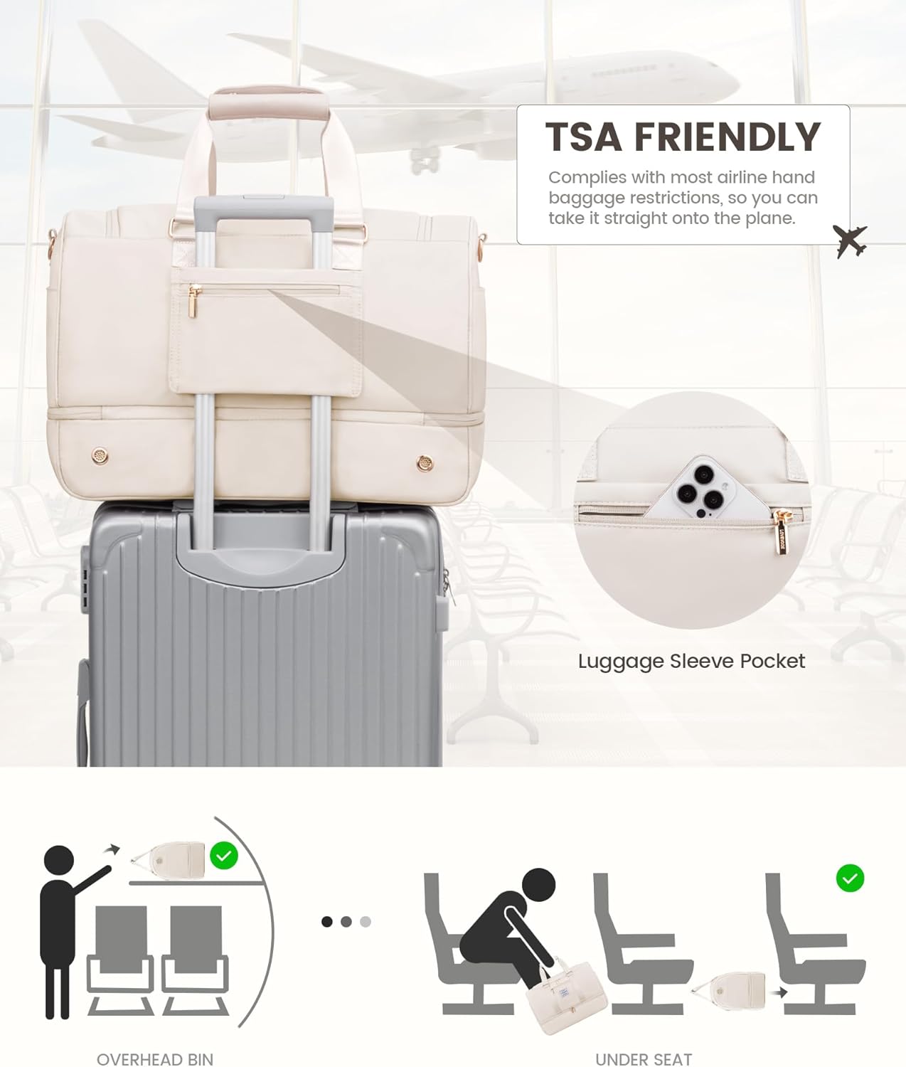 - 【Handgepäck Tasche für Flugzeug】: Diese Reisetasche hat gepolsterte Griffe und einen abnehmbaren Schultergurt, so dass sie bequem in der Hand oder quer über den Körper getragen werden kann. Auf der Rückseite befindet sich ein Gepäckriemen, der