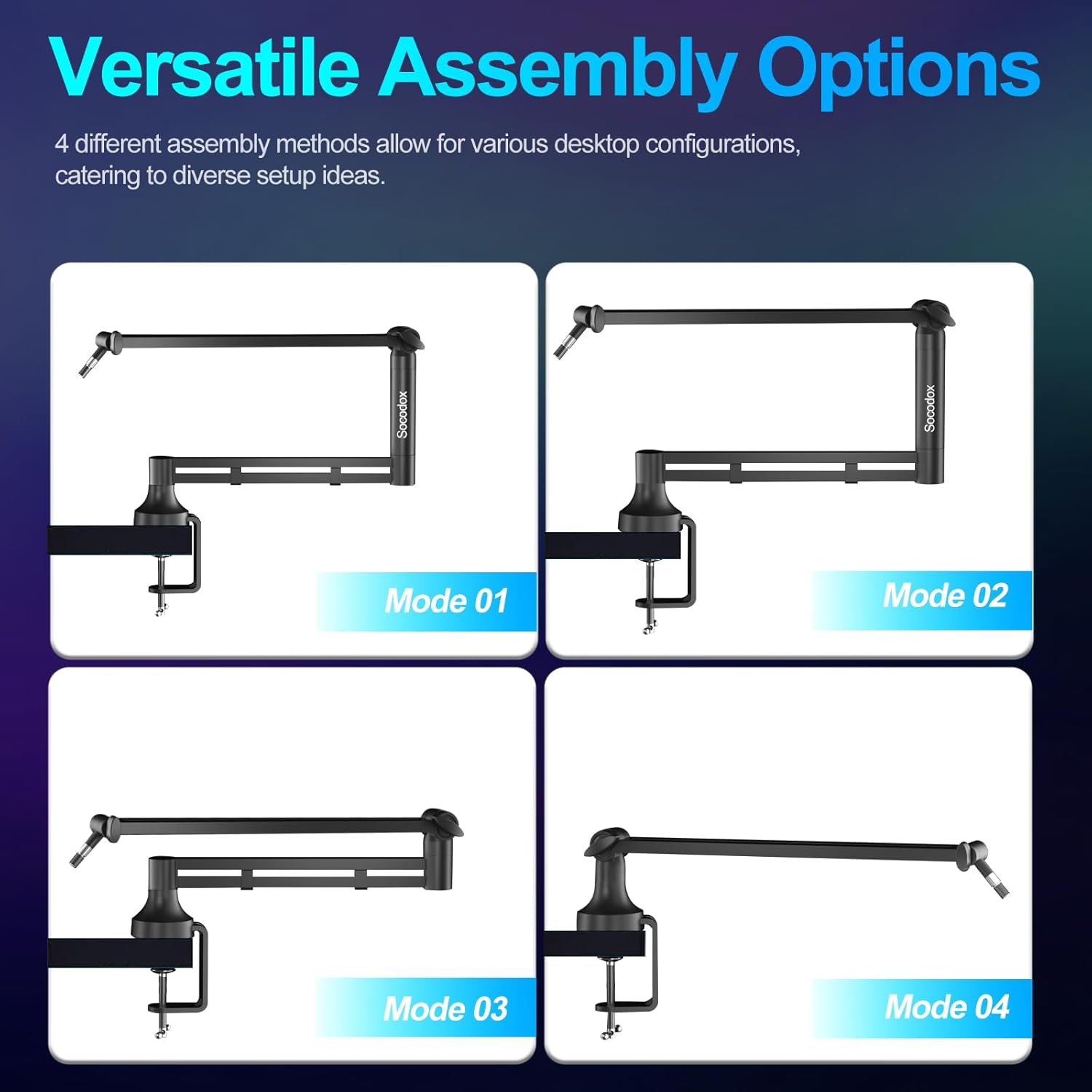 - Universelle Kompatibilität & Kabelführung – Mit 3/8"- und 5/8"-Adaptern für eine breite Mikrofonkompatibilität. Integriertes Kabelmanagement sorgt für Ordnung und ein professionelles Erscheinungsbild