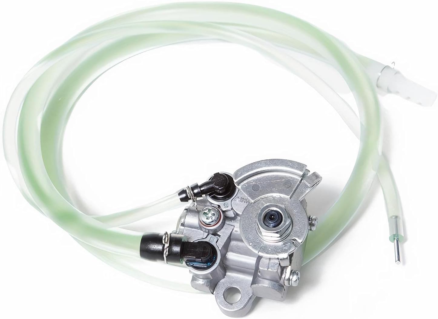 - Die Pumpe ist mit Schläuchen versehen und mit 2T-Öl befüllt. Braucht also nach dem Einbau nicht entlüftet zu werden.