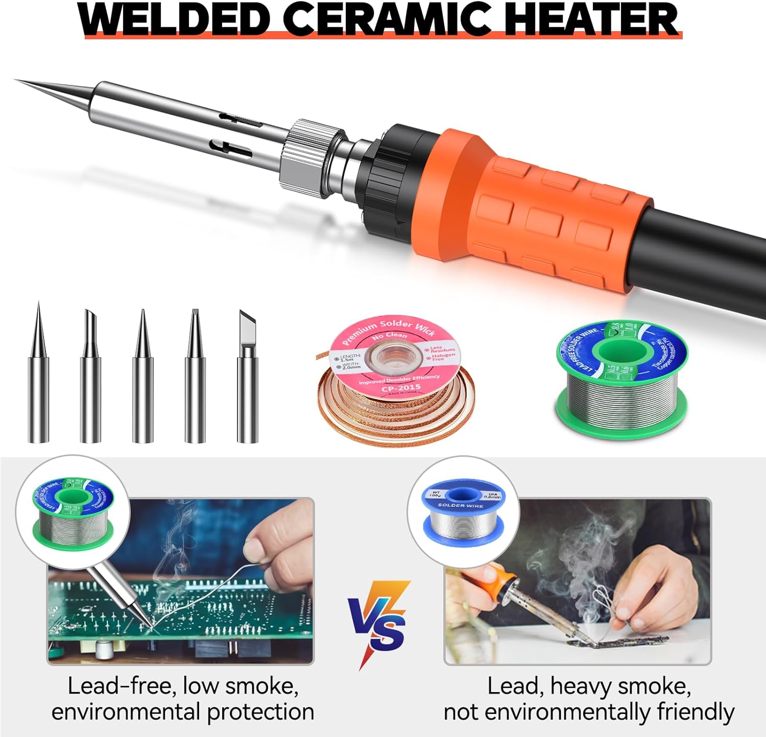 - [Lötstation LED-Digitalanzeige] 60W Heizkern für schnelles Aufheizen, unterstützt 2 Temperaturmodi (°C/°F). Einstellbarer TEMP-Bereich: 90 - 480°C (194 - 896°F). Auch mit antistatischem & ESD-Sicherheitsdesign, sicher und zuverlässig.