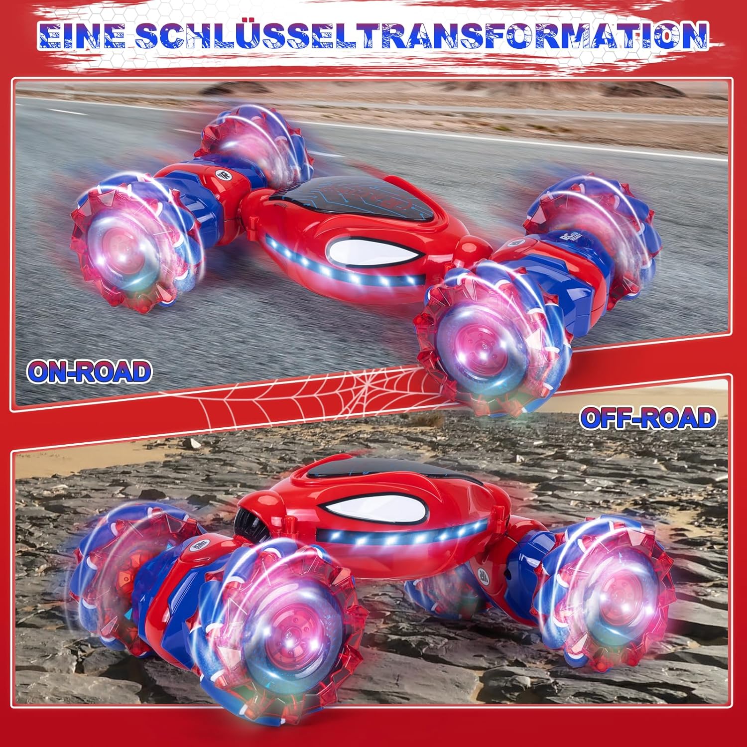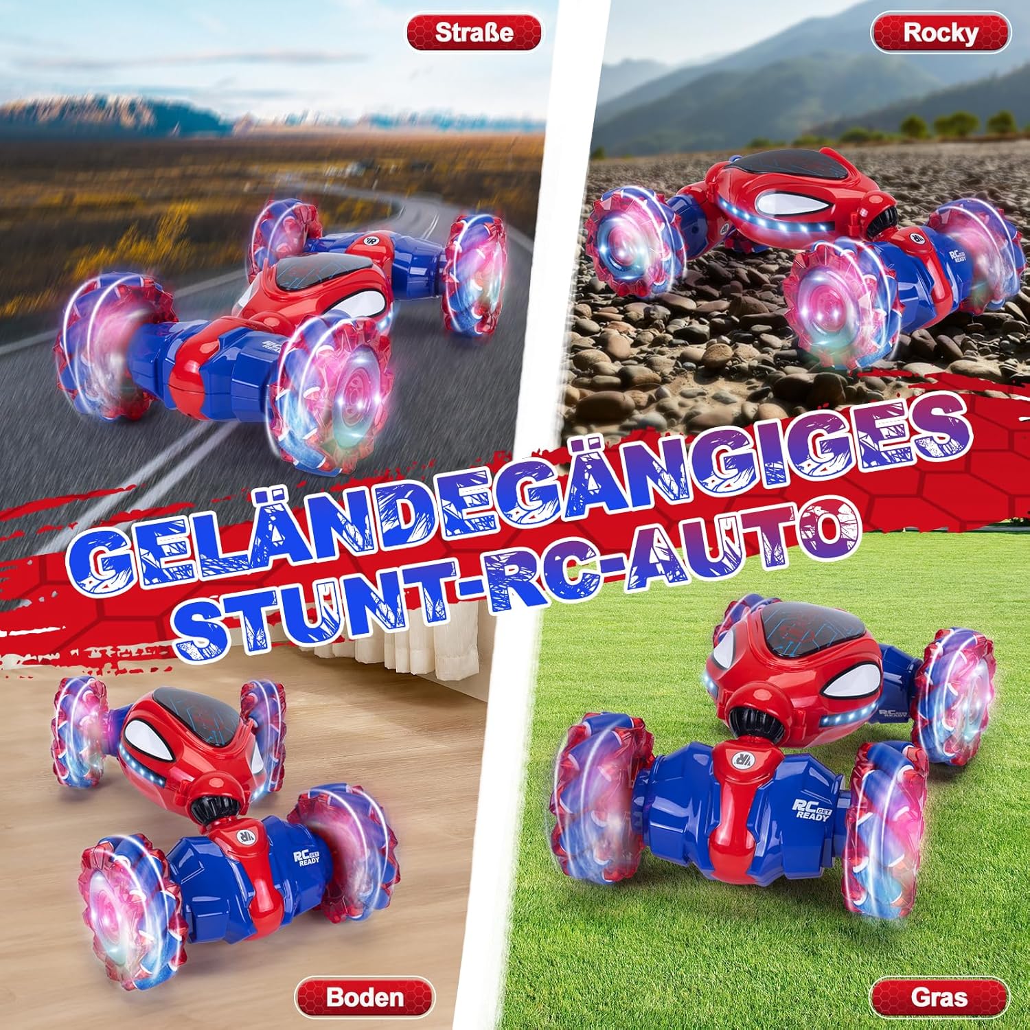 - đžă360° Rundum Drehungă:Dieses ferngesteuerte Auto bietet eine leistungsstarke Doppel-Seiten-Fahrfunktion und 360° Rundum-DrehfĂ€higkeit,die beeindruckende Stunts,schnelle Richtungswechsel und anspruchsvolle GelĂ€nde bewĂ€ltigt.Ob auf flachen