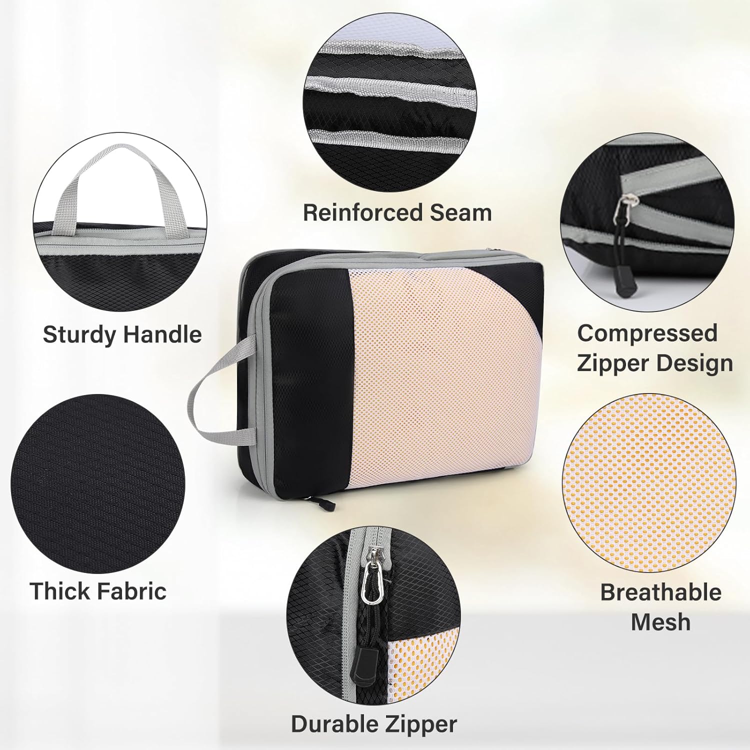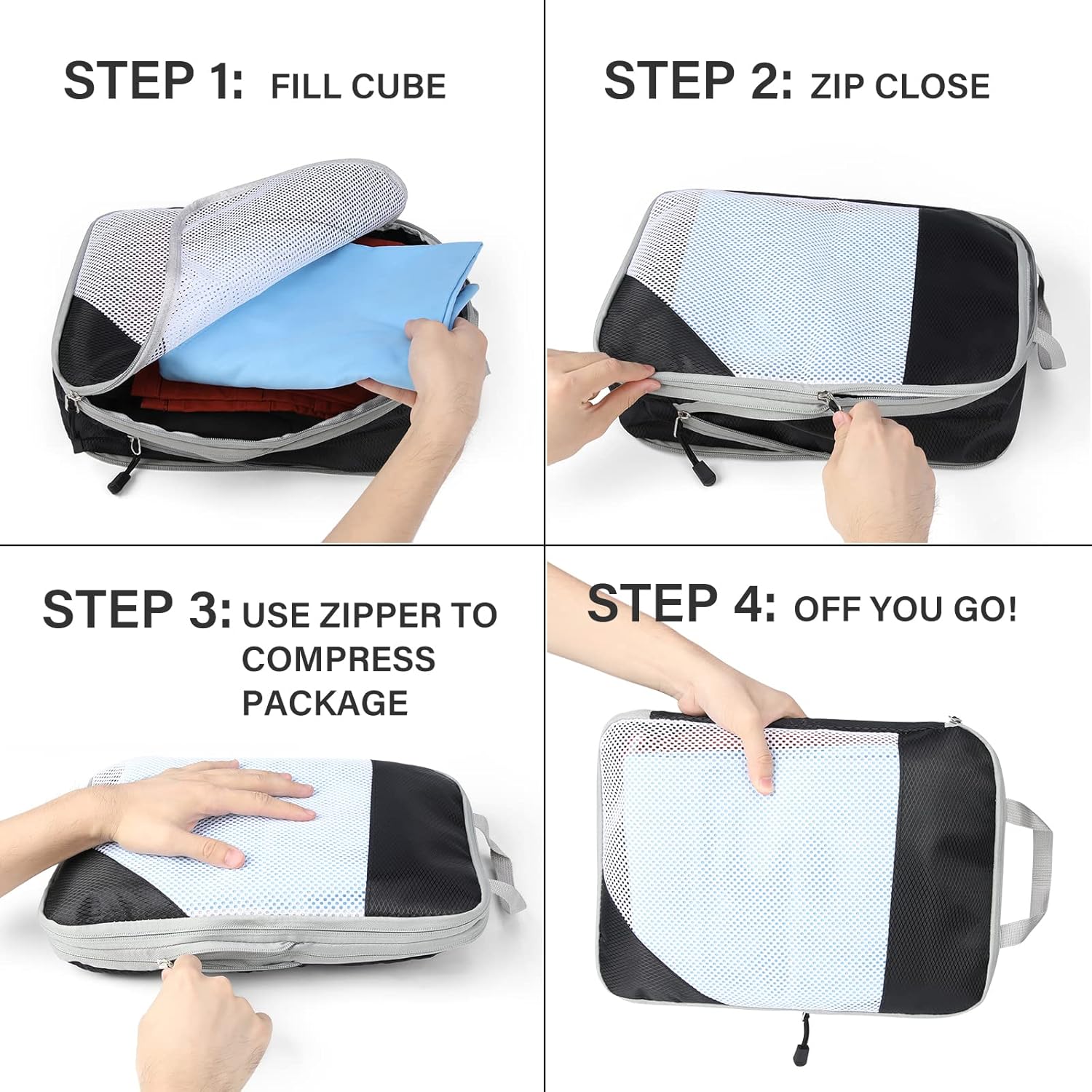 • 【Komprimierbares Design um Platz zu Sparen】Die äusseren Reissverschlüsse des Packwürfels funktionieren perfekt beim Komprimieren von Kleidung, um die Grösse des Gepäcks zu minimieren. Diese Reiseorganisatoren sparen bis zu 30% mehr Platz in