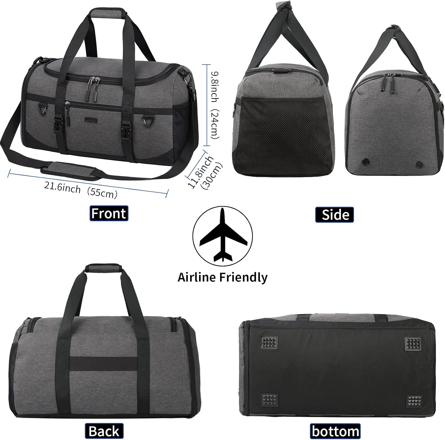 - 【Grosse Kapazität-40L】: Abmessungen: 21,6 x 9,8 x 11,8 zoll / 55 x 24 x 30 cm. Es hat 1 grosses hauptfach und 11 funktionale aufbewahrungsteile, darunter 1 schuhfach, 1 innentasche für nasse sachen, 1 vordertasche mit reissverschluss, 4