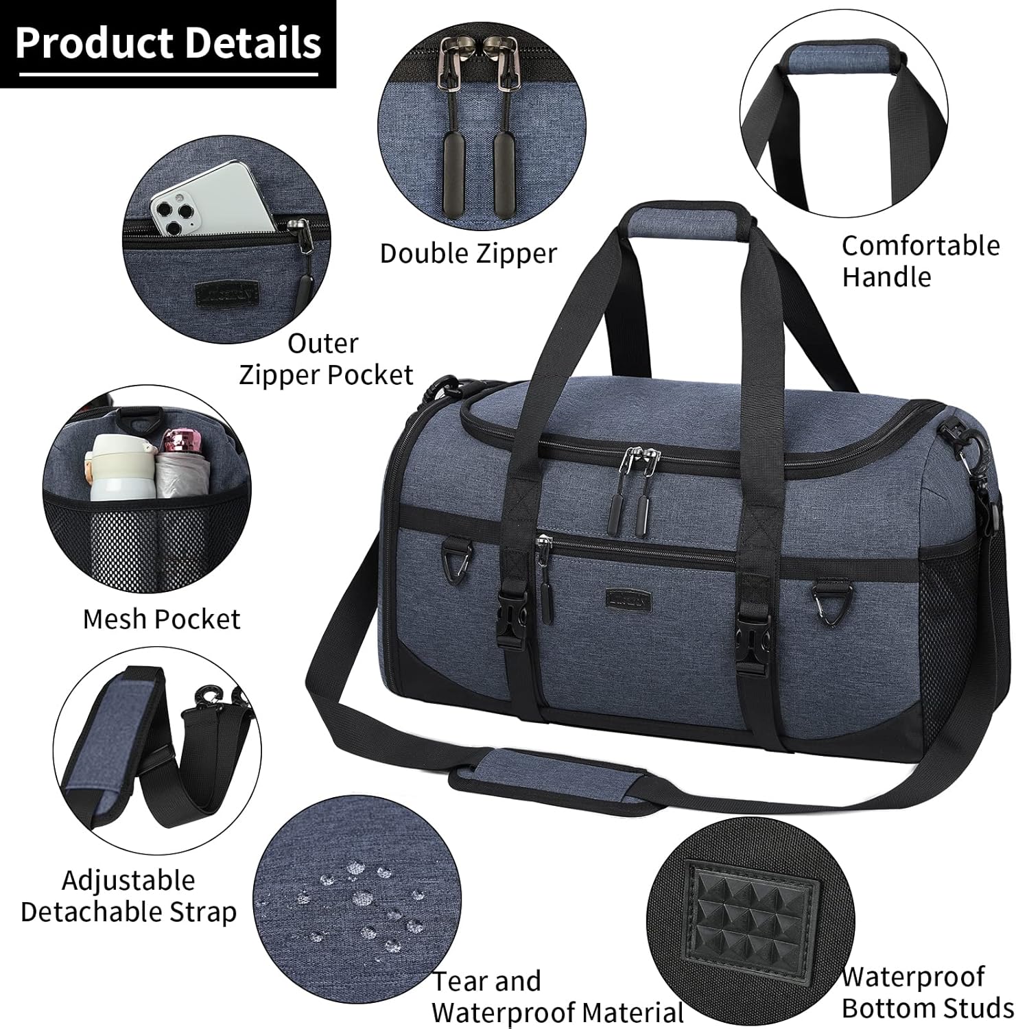 • 【Mehrzweck】 : Entworfen mit abnehmbarem/verstellbarem schultergurt und doppelt gepolstertem griff, kann es als reisetasche/umhängetasche/sporttasche/für fitnessstudio, pool, yoga, camping, strand, radfahren, schule oder wochenendausflug verwendet