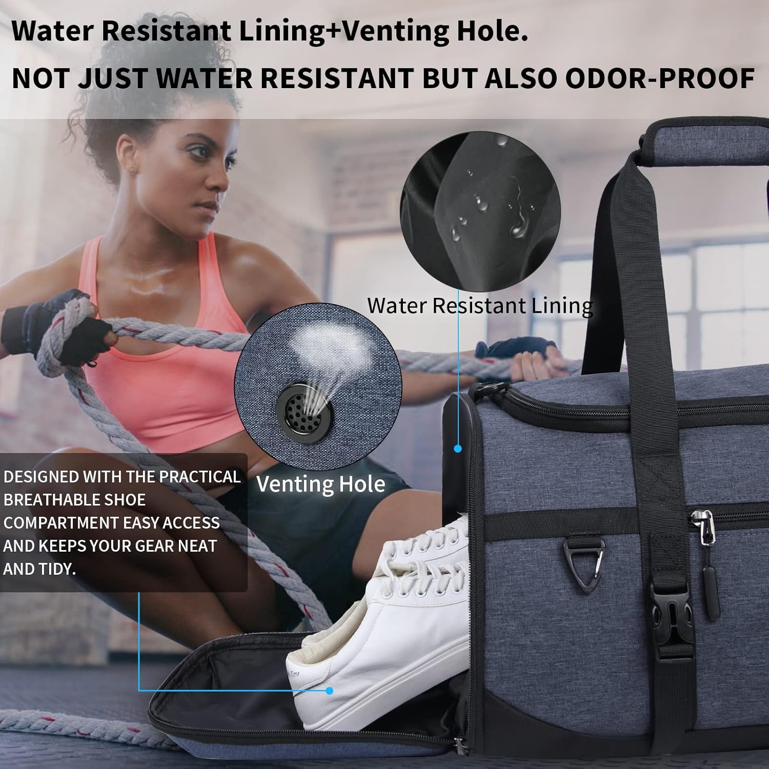 • 【5 Praktische Designs】: 40L/55L sporttasche passt in die meisten fitnessstudio-schliessfächer. Verstellbare schnallenriemen können yogamatten jeder grösse sichern. Der hintere gepäckgurt ist bequemer zu tragen, die sporttasche ist mit einem