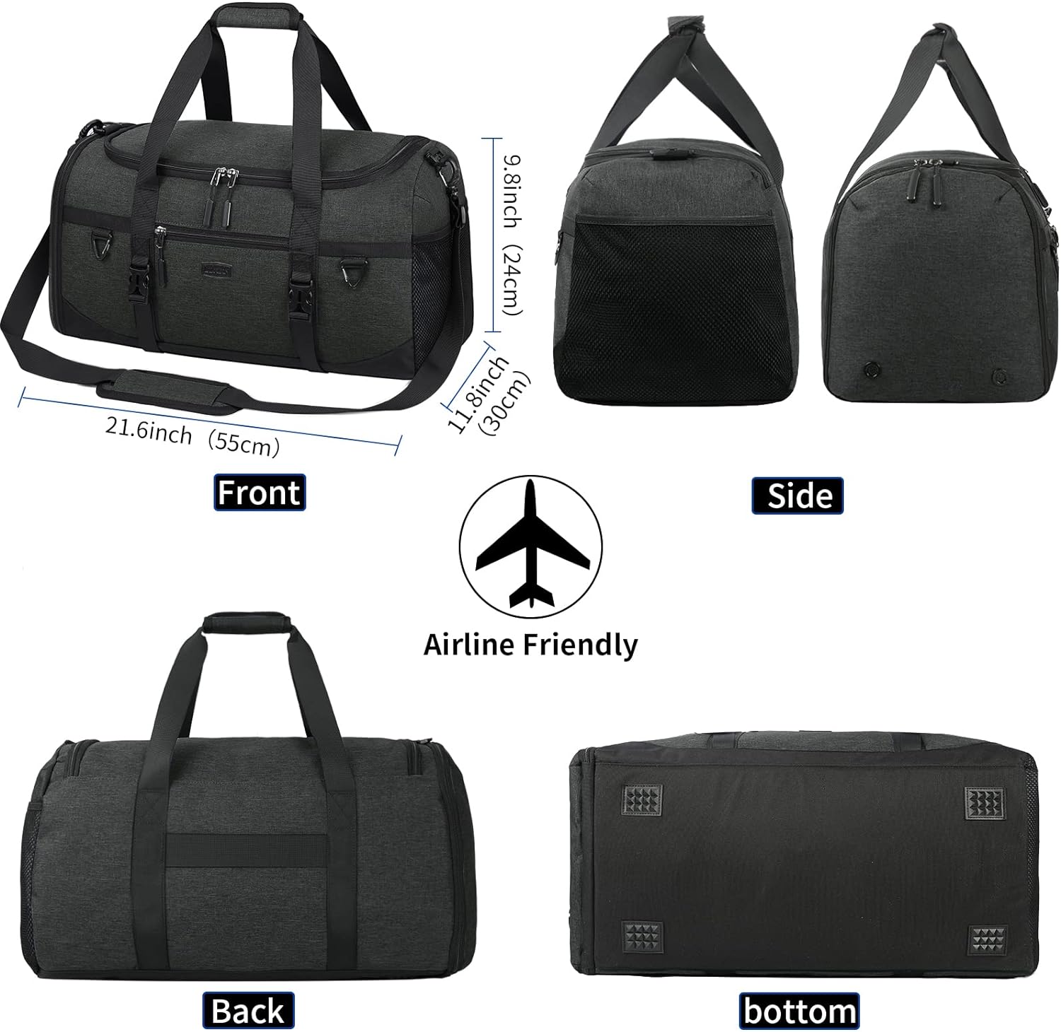 • 【Grosse Kapazität-55L】: Abmessungen: 22,8 x 10,6 x 12,5 zoll / 58 x 27 x 32 cm. Es hat 1 grosses hauptfach und 11 funktionale aufbewahrungsteile, darunter 1 schuhfach, 1 innentasche für nasse sachen, 1 vordertasche mit reissverschluss, 4